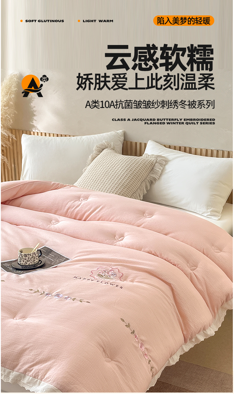 当前位置: 91家纺网 > 商品网购 > 被子 > 冬被 > 宝士康家纺 2025新品 10A抗菌尤里绣花冬被被芯 外贸/跨境 尤里-粉色