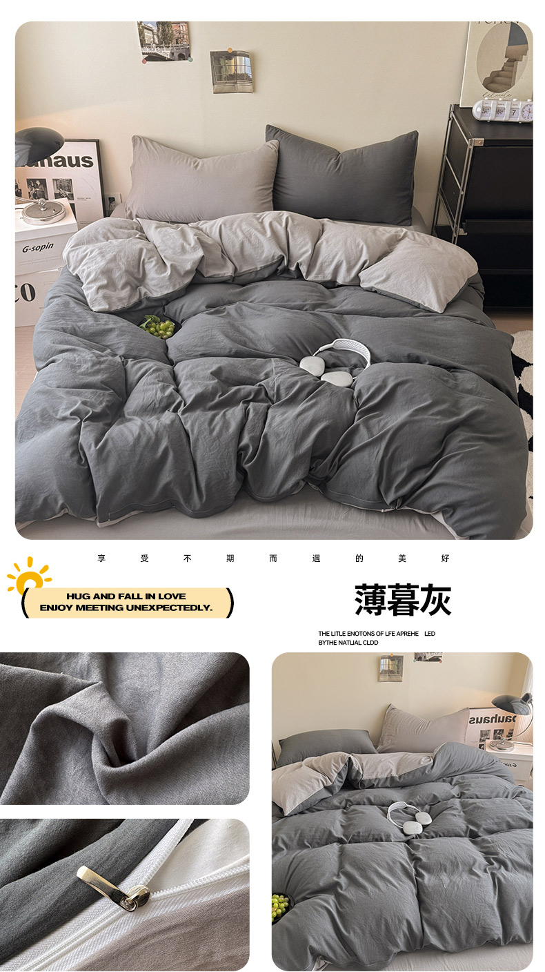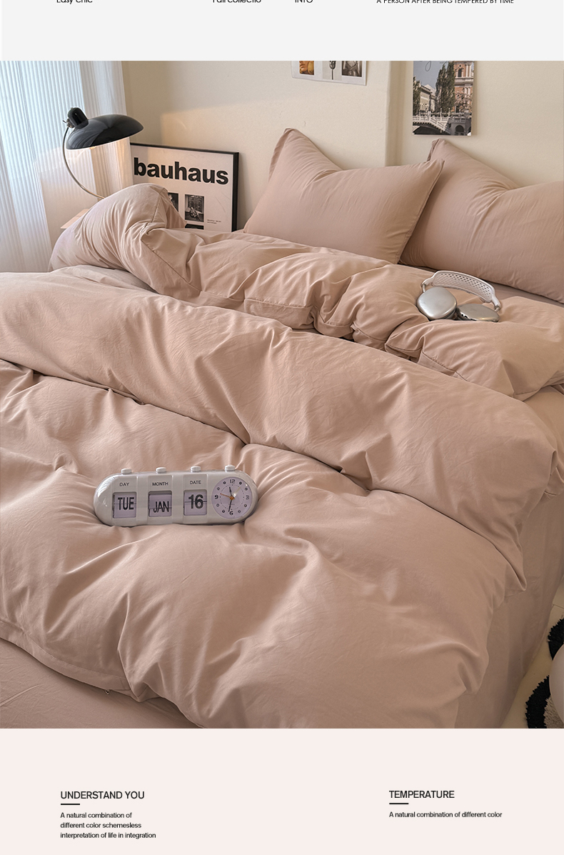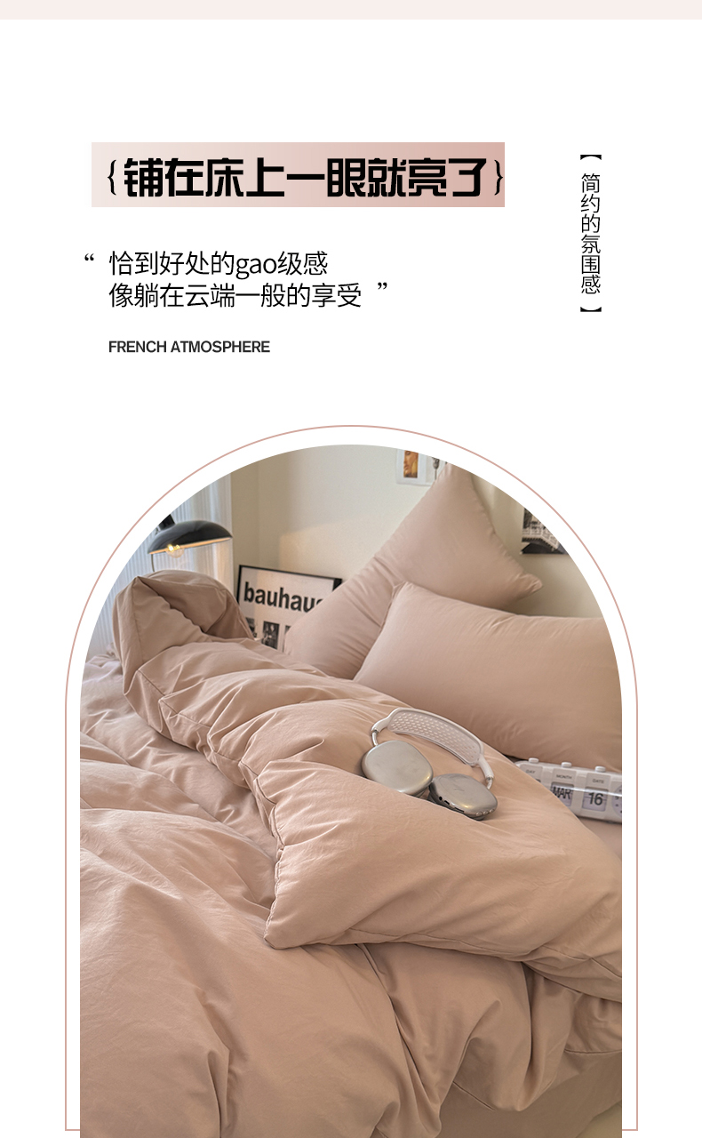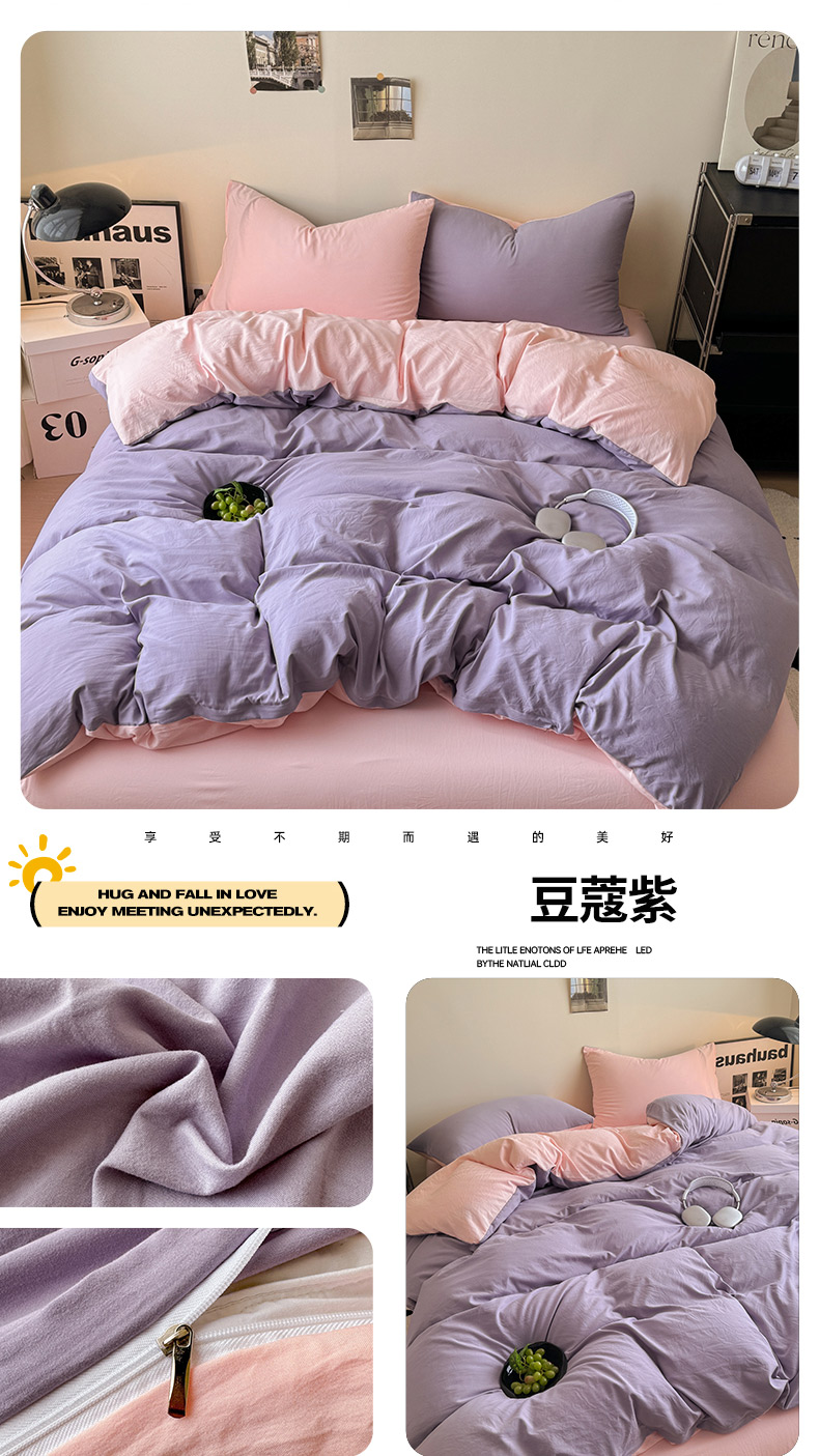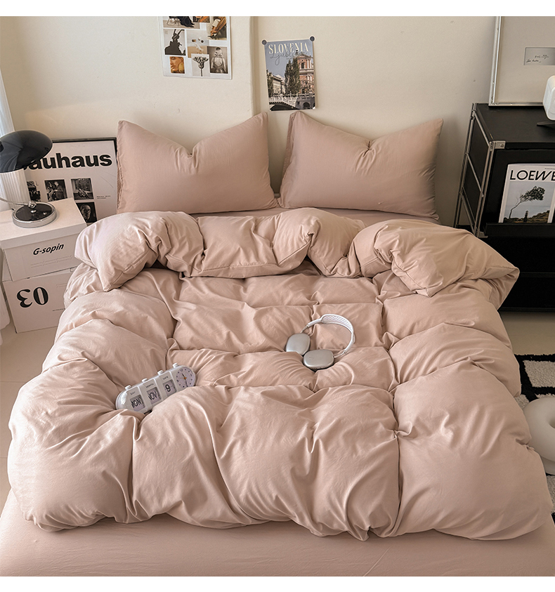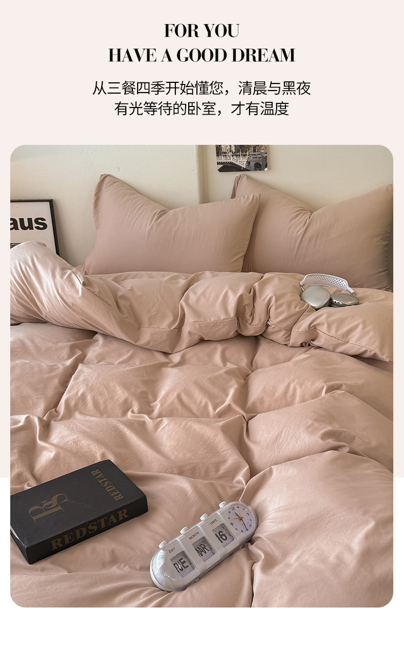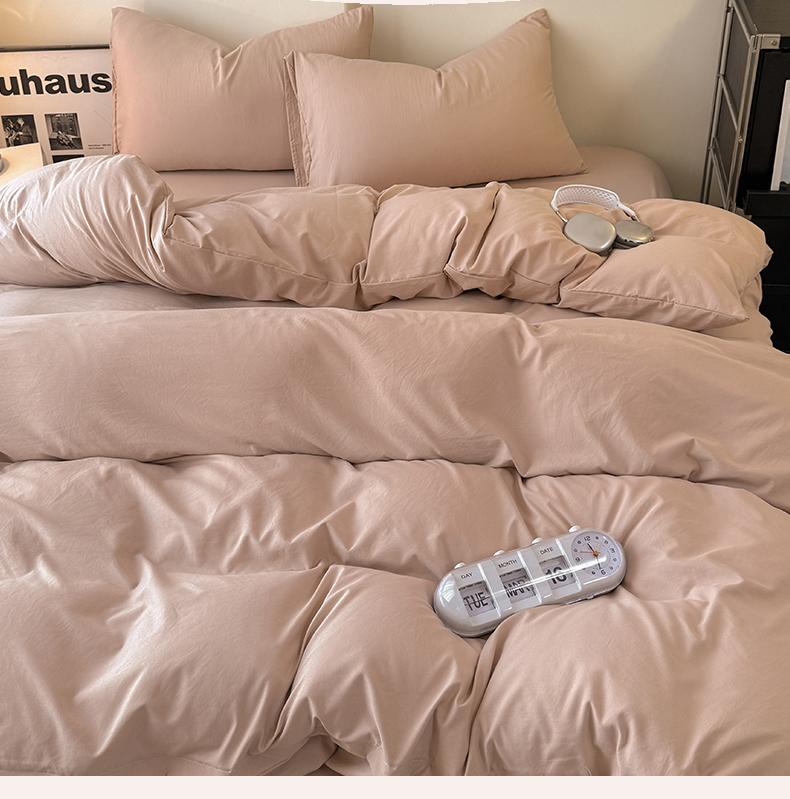 当前位置: 91家纺网 > 商品网购 > 床品套件 > 四件套 > 其它四件套 > 桔禾家纺 2025新款ins风纯色水洗棉四件套双拼水洗棉学生三件套四件套 豆沙