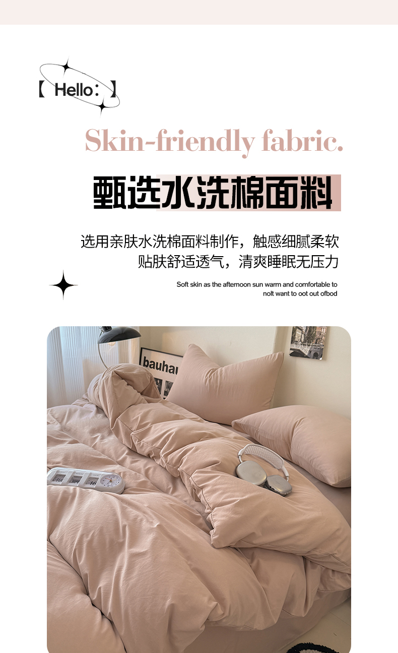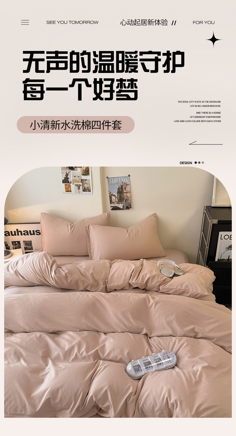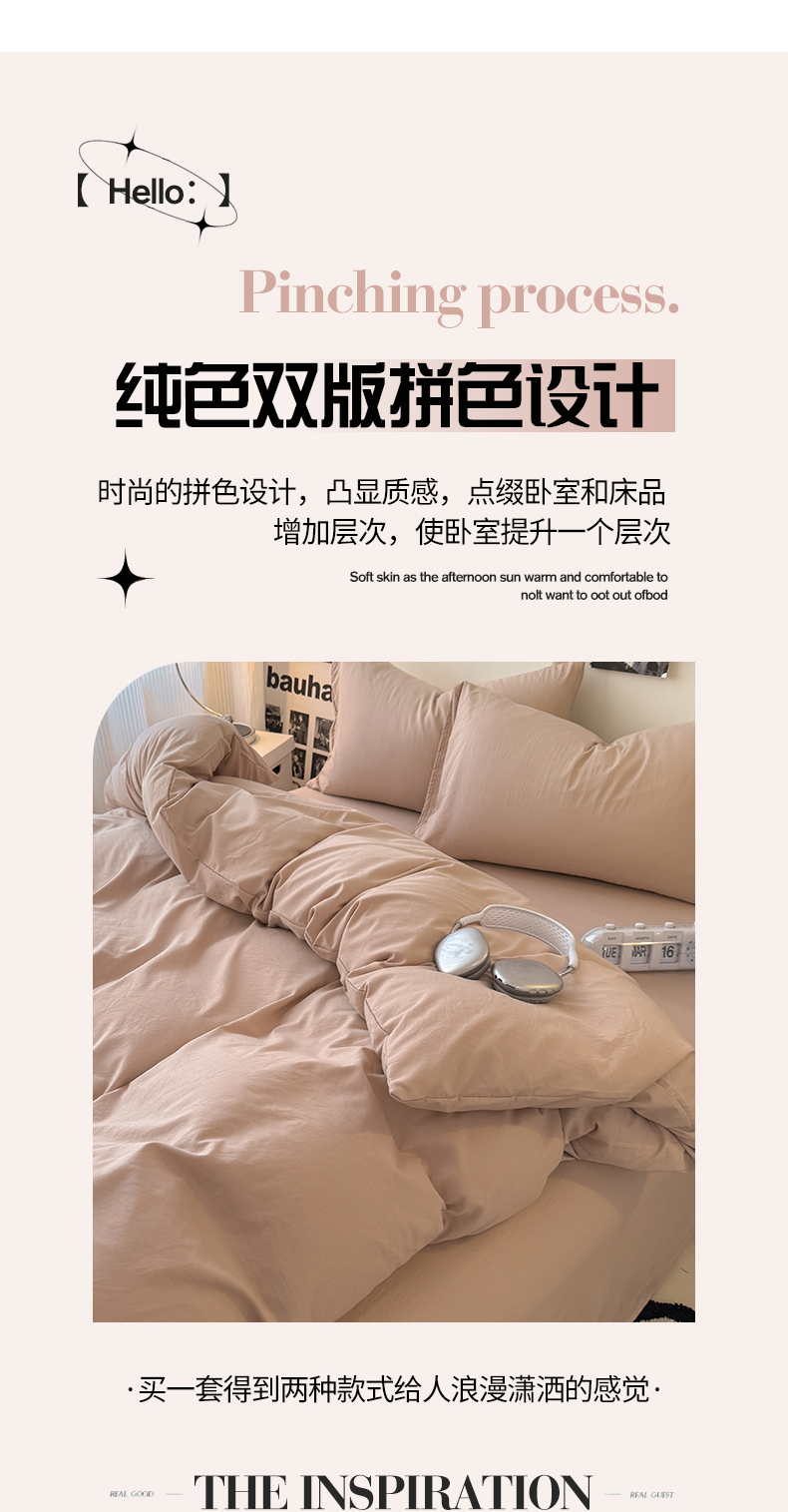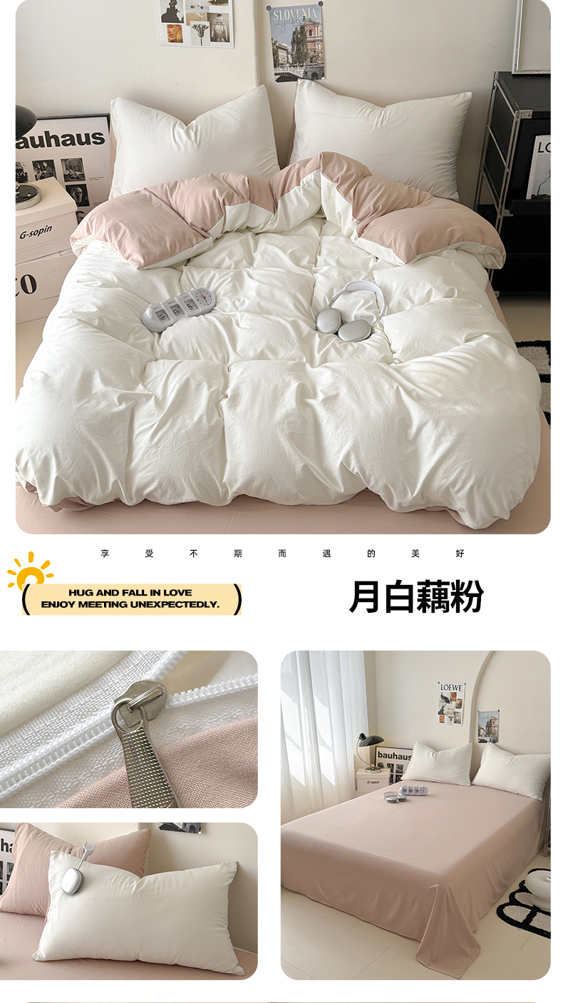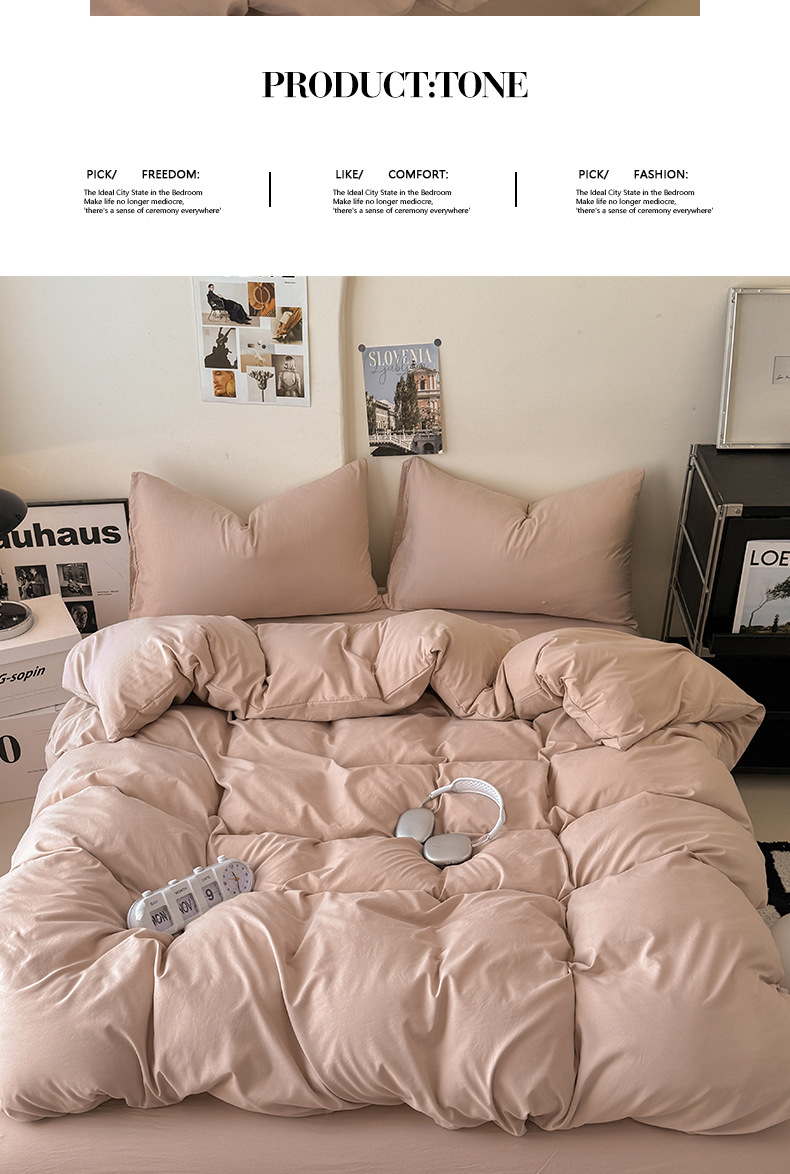 当前位置: 91家纺网 > 商品网购 > 床品套件 > 四件套 > 其它四件套 > 桔禾家纺 2025新款ins风纯色水洗棉四件套双拼水洗棉学生三件套四件套 豆沙