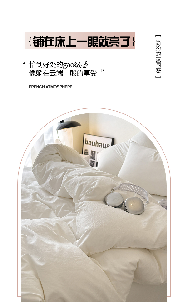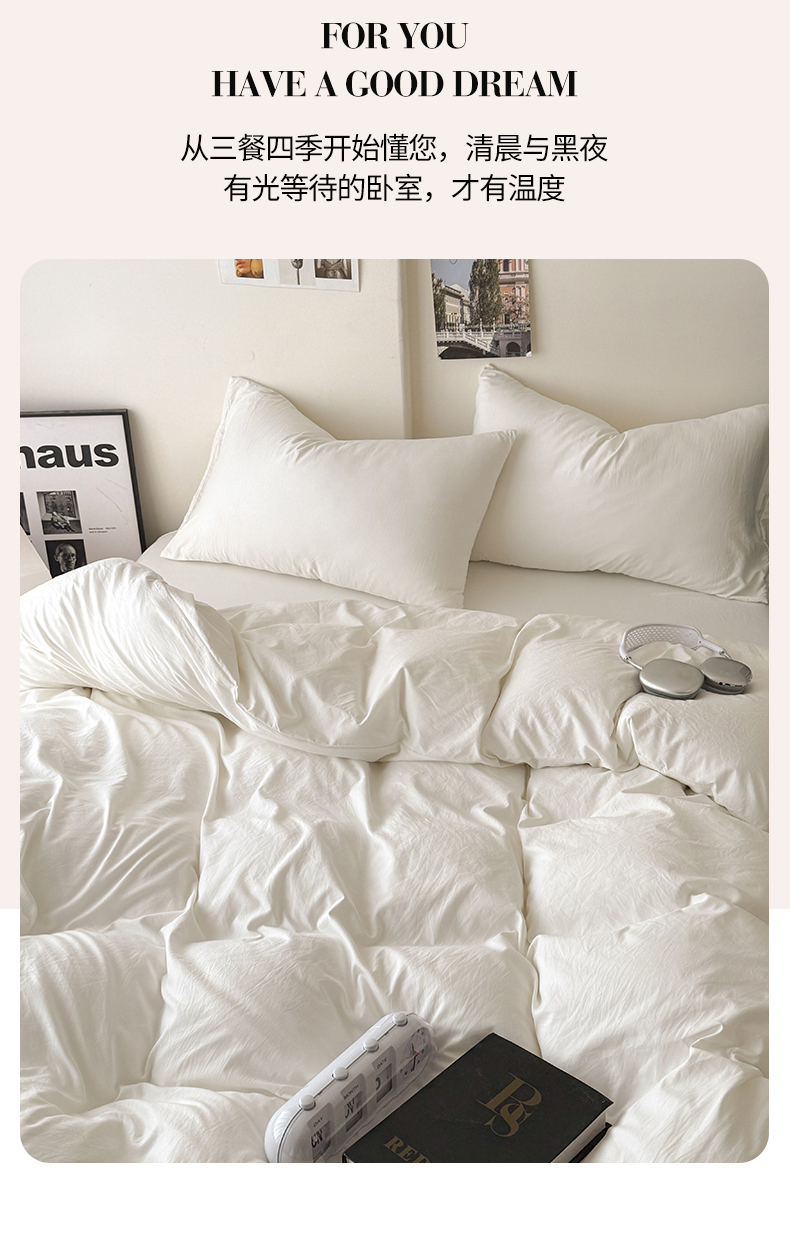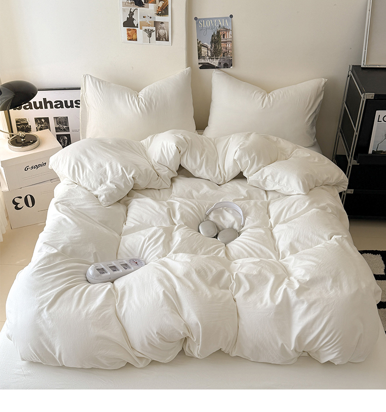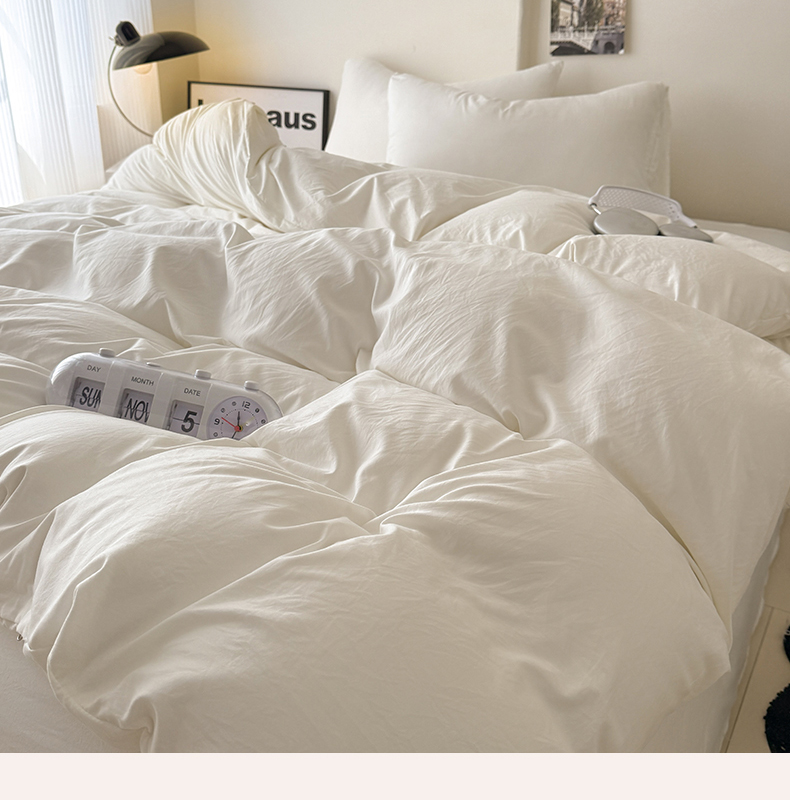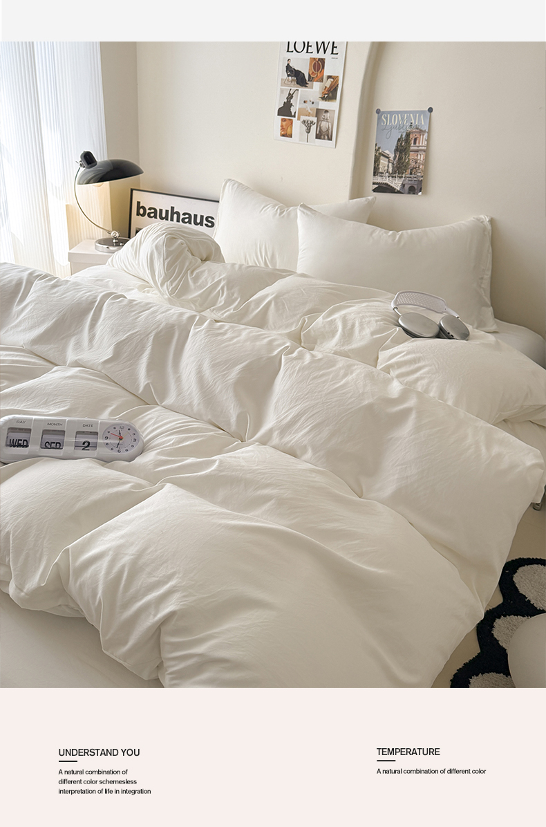 当前位置: 91家纺网 > 商品网购 > 床品套件 > 四件套 > 其它四件套 > 桔禾家纺 2025新款ins风纯色水洗棉四件套双拼水洗棉学生三件套四件套 月光白