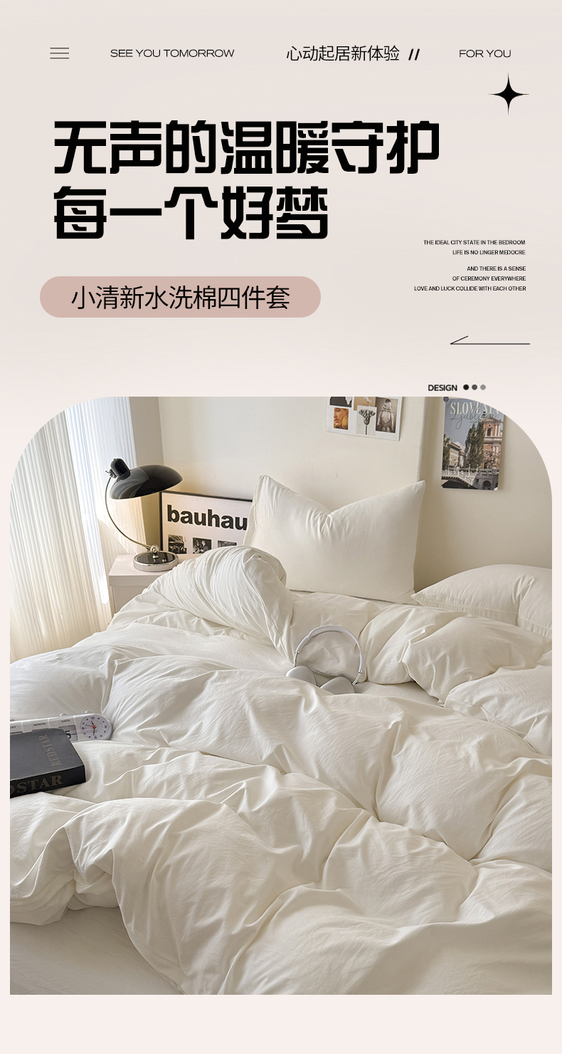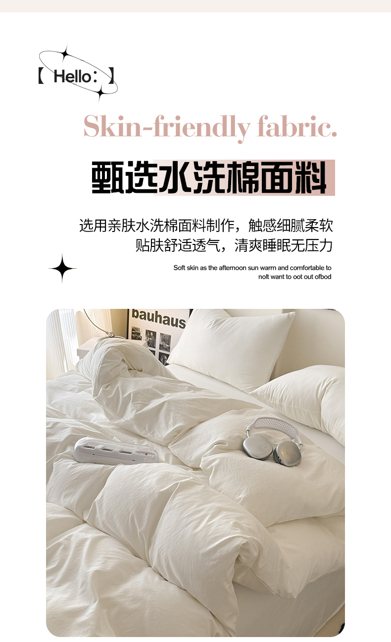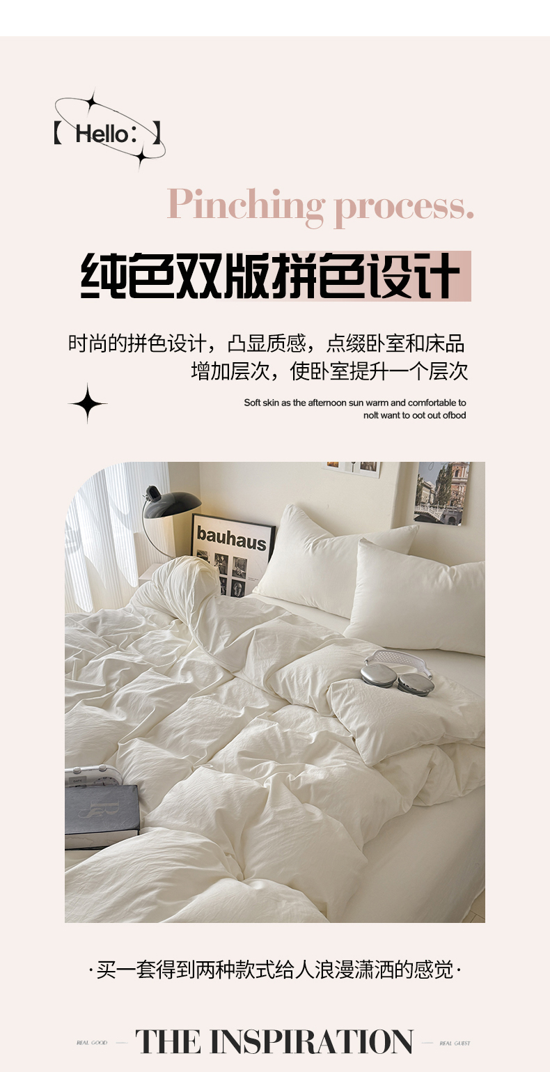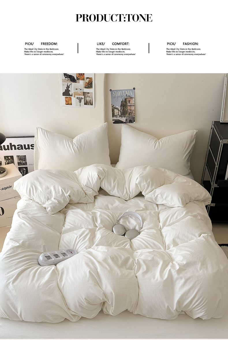 当前位置: 91家纺网 > 商品网购 > 床品套件 > 四件套 > 其它四件套 > 桔禾家纺 2025新款ins风纯色水洗棉四件套双拼水洗棉学生三件套四件套 月光白