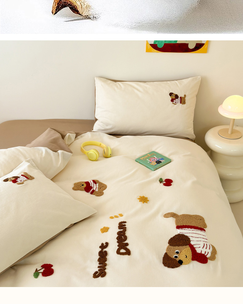 当前位置: 91家纺网 > 商品网购 > 床品套件 > 四件套 > 全棉普通四件套 > 如意朵 2025新款全棉加厚磨毛绣花四件套风格一(专版花型) 甜心狗狗