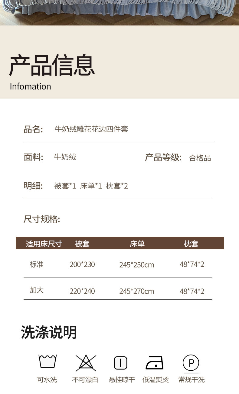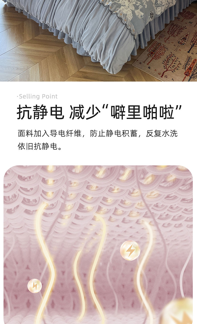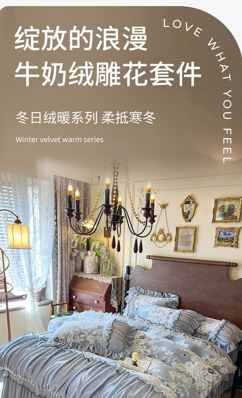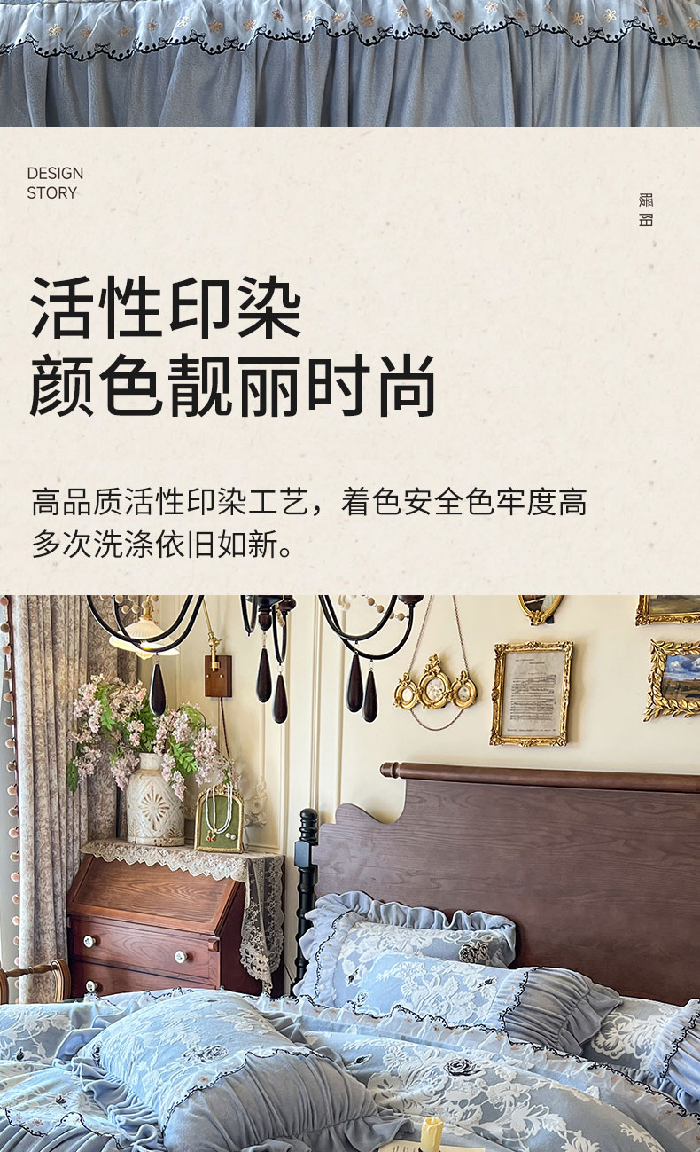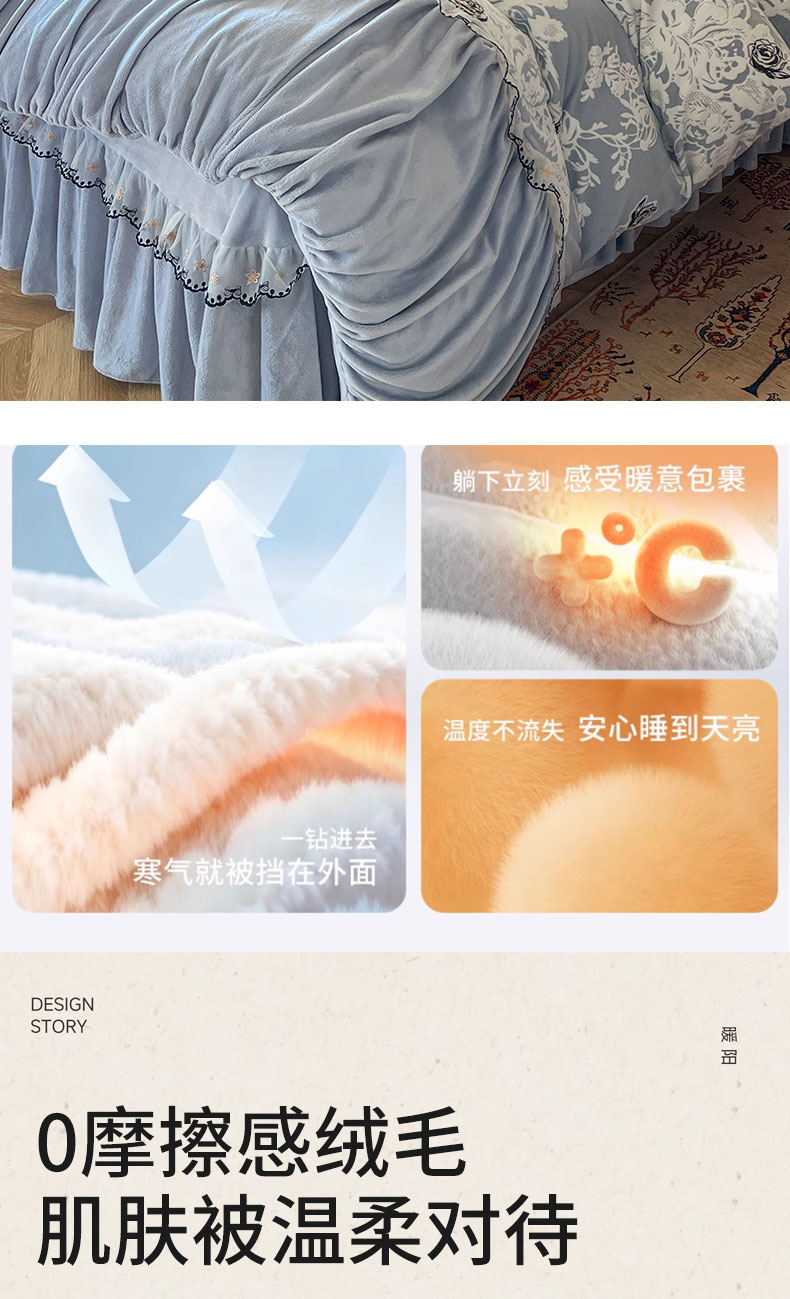 当前位置: 91家纺网 > 商品网购 > 床品套件 > 四件套 > 牛奶绒四件套 > 网红馆(ck家纺) 2025新款牛奶绒雕花花边四件套--国色天香 国色天香 兰色