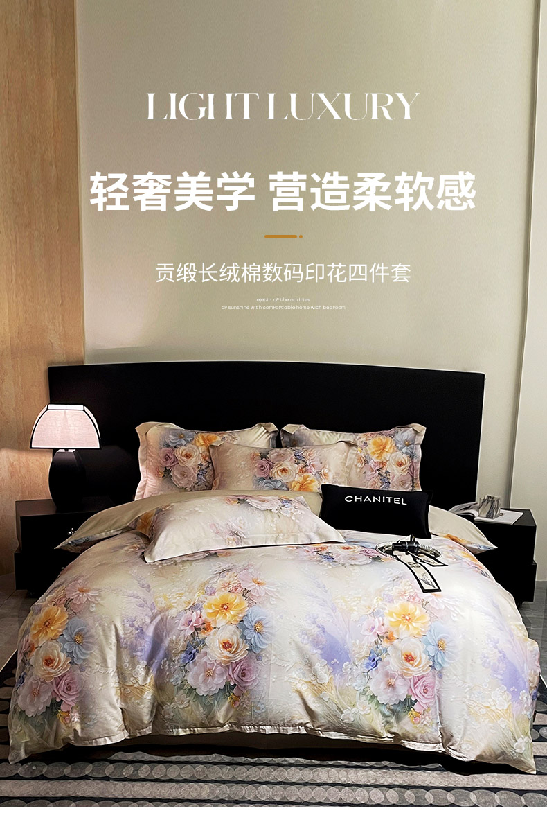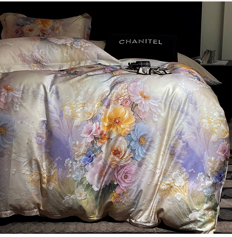 大渔生活 2025新款贡缎长绒棉高品数码印花四件套 柔缎花眠