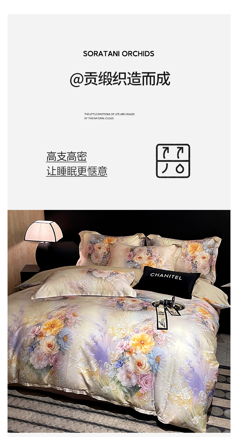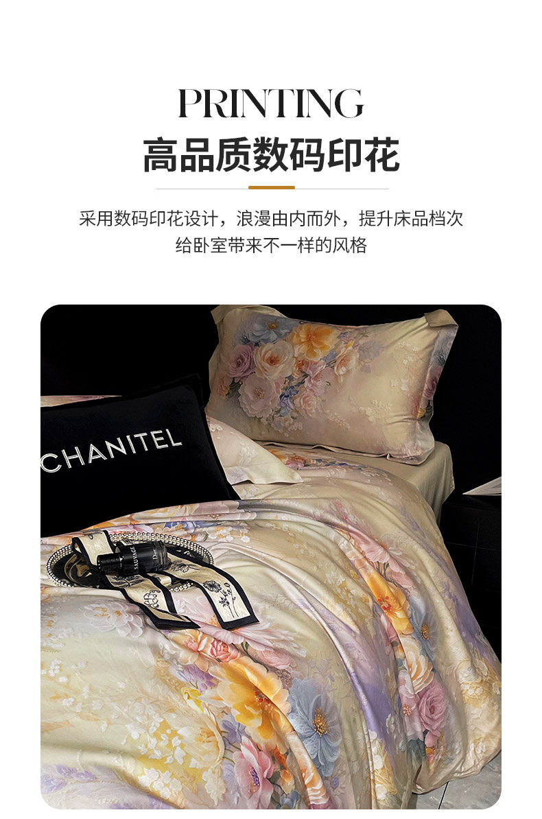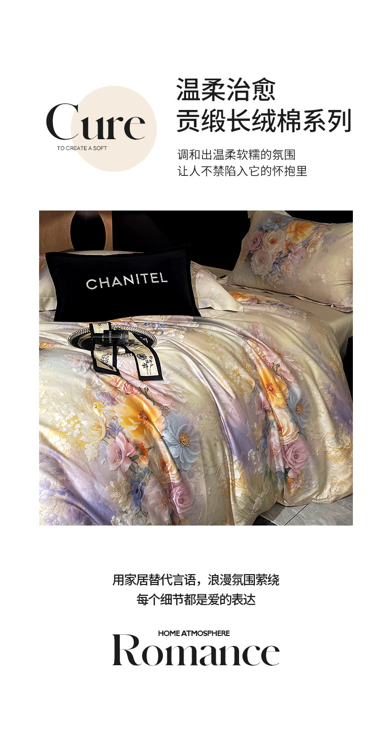 商品名称:大渔生活 2025新款贡缎长绒棉高品数码印花四件套 柔缎花眠