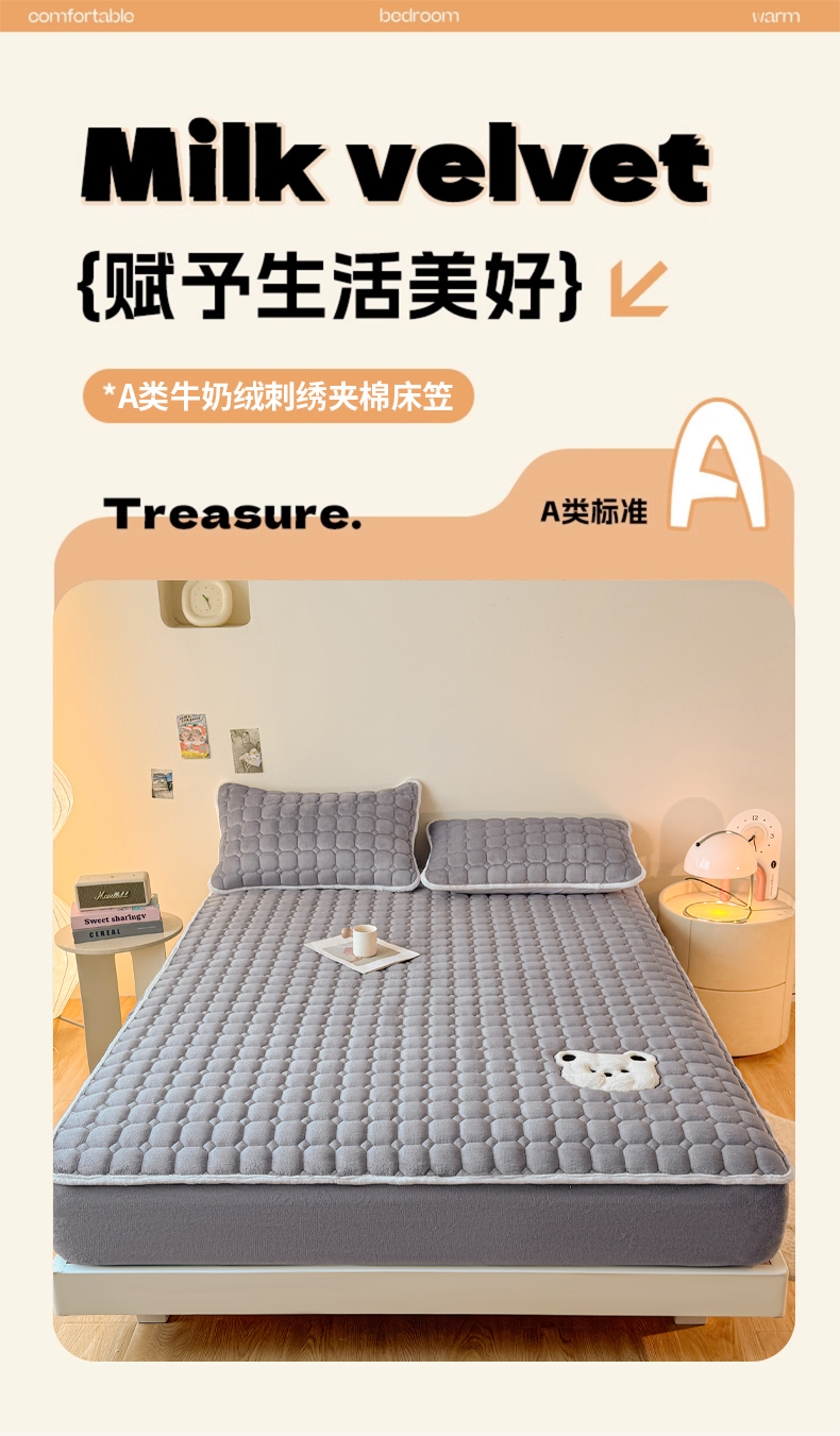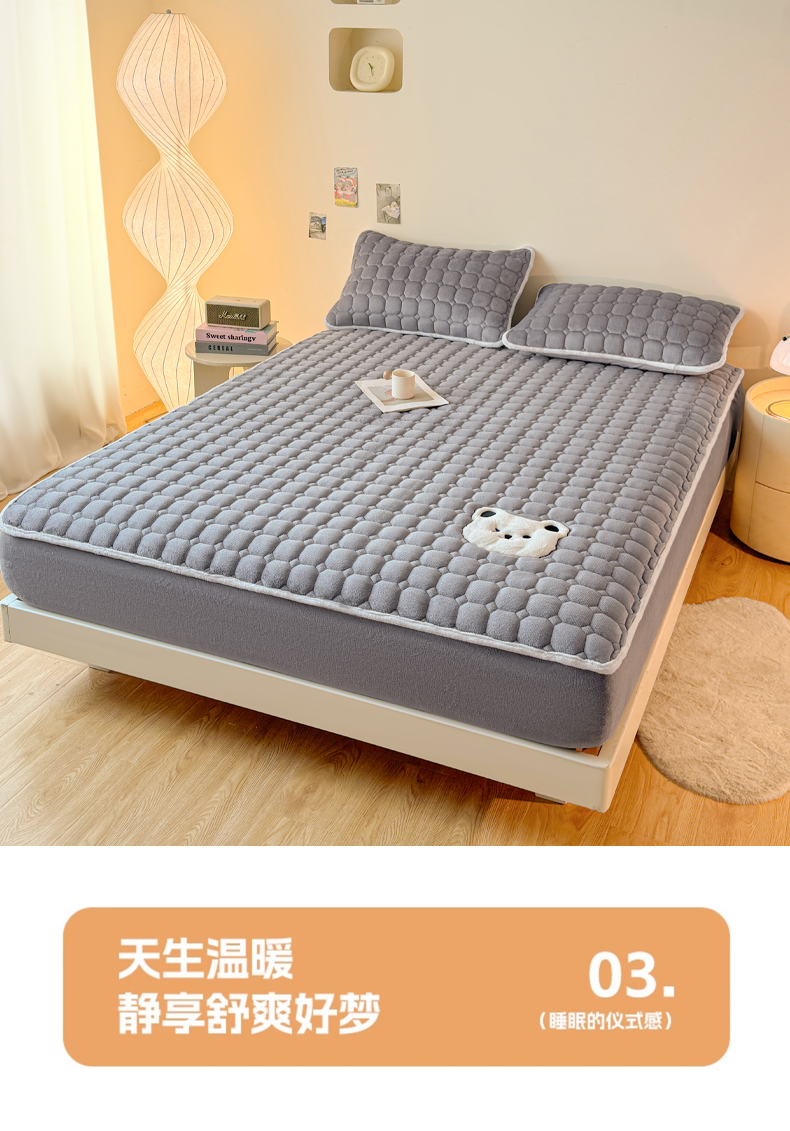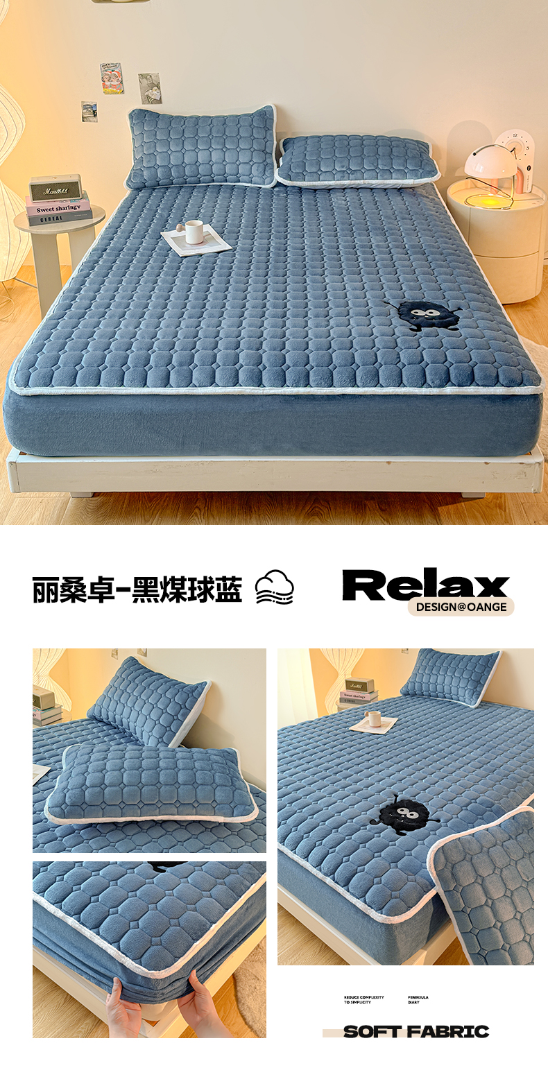 (总)予梦家纺 2025秋冬新款牛奶绒加厚刺绣夹棉单床笠床垫子保护套秋冬保暖床罩子三件套,丽桑卓-黑煤球粉,丽桑卓-黑煤球灰,丽桑卓-黑煤球蓝,丽桑卓-黑煤球绿,丽桑卓-小白熊粉,丽桑卓-小白熊灰,丽桑卓-小白熊蓝,丽桑卓-小白熊绿