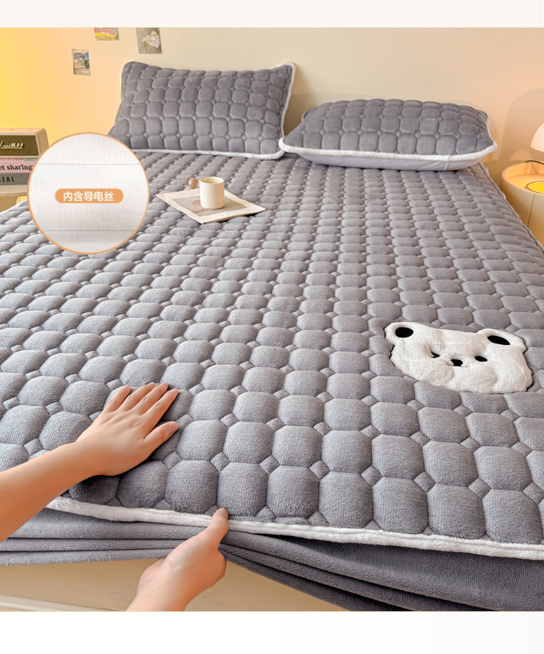 (总)予梦家纺 2025新款牛奶绒加厚刺绣床护垫床垫保护套,辛德拉-小白熊绿,辛德拉-黑煤球粉,辛德拉-黑煤球灰,辛德拉-黑煤球蓝,辛德拉-黑煤球绿,辛德拉-小白熊粉,辛德拉-小白熊灰,辛德拉-小白熊蓝
