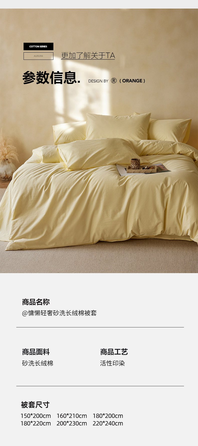 (总)轩和家居 2025新款全棉高支旧感砂洗长绒棉单被套,组合,薄樱粉,淡黄色,豆沙色,霁兰色,落栗棕,墨染灰,暮烟灰,浅云白,青绿色,秋麦色,松石绿,天空蓝,雾海蓝,细雨灰