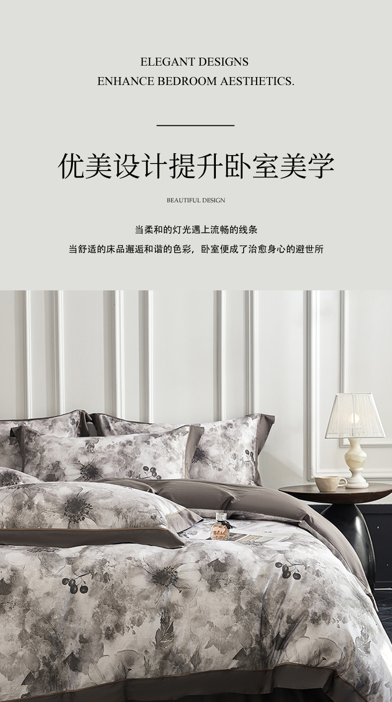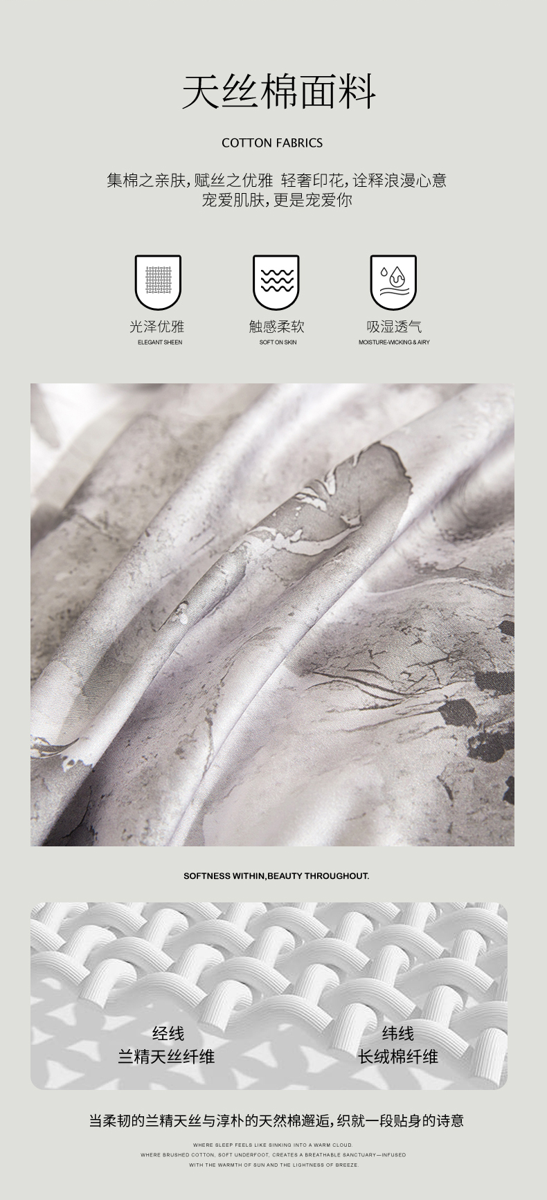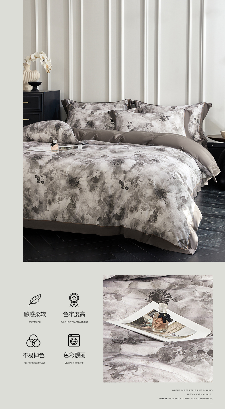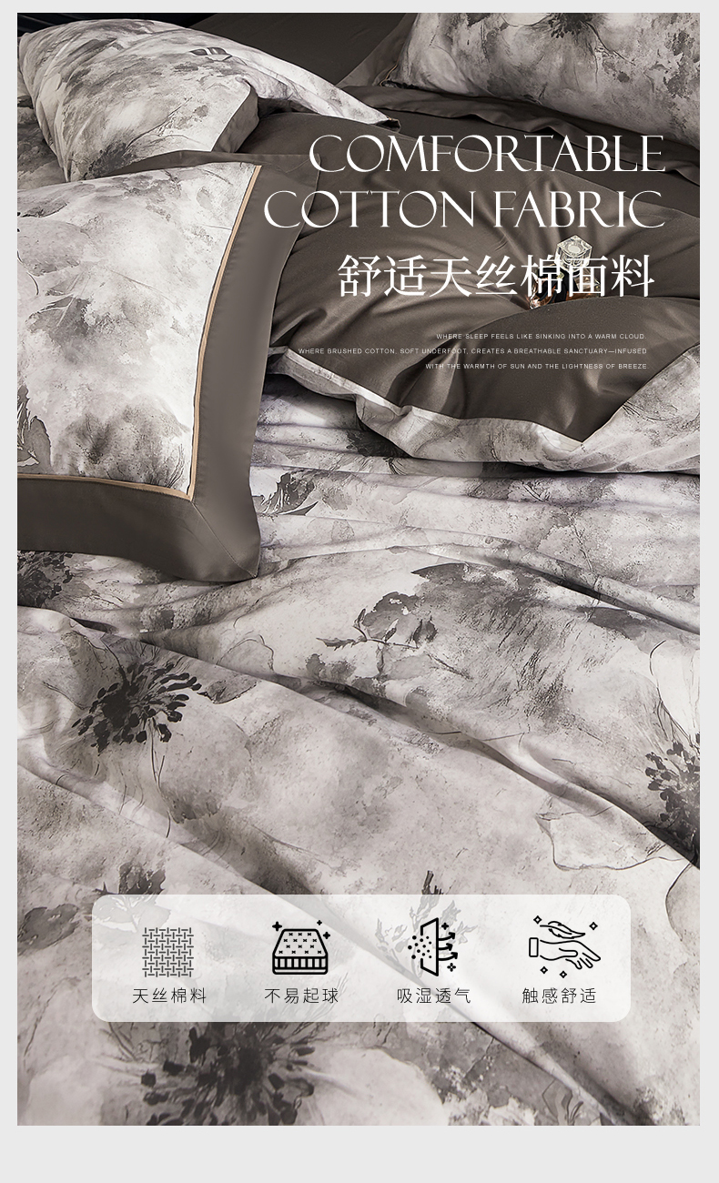 (总)洺兰家居 2026年新疆长绒棉100支天丝棉高端工艺款床单床笠四件套床上用品,淡若清香,陌上花开,羽墨