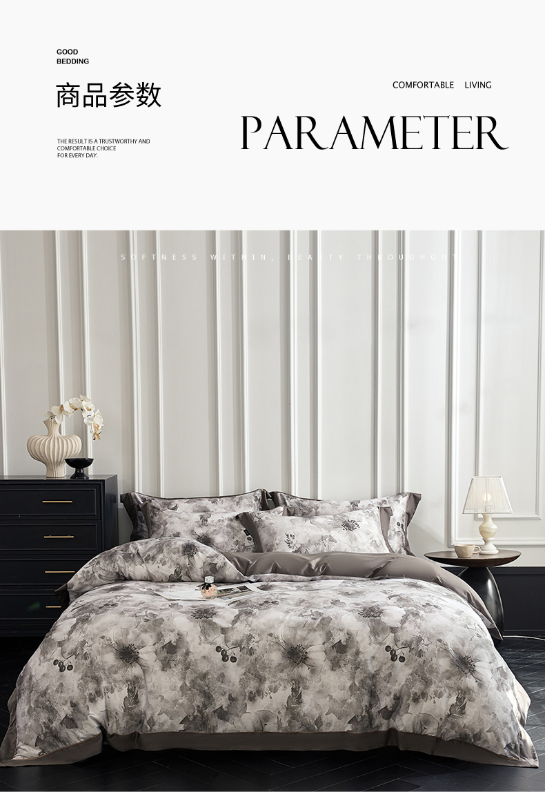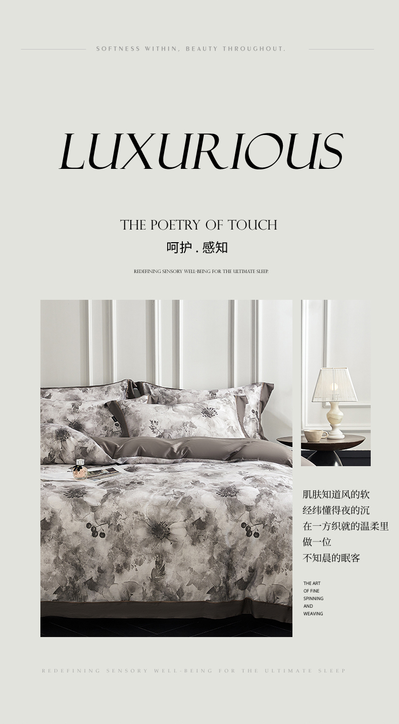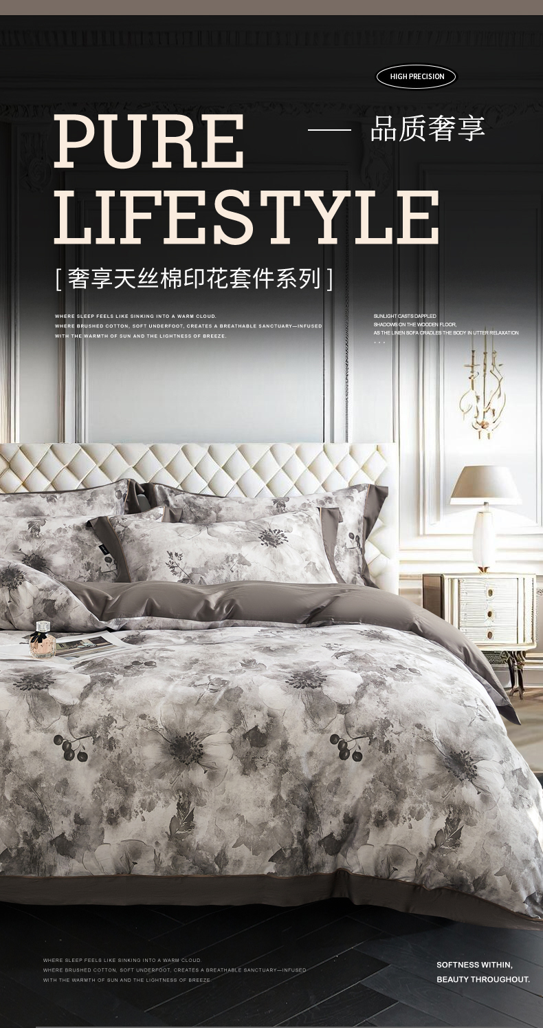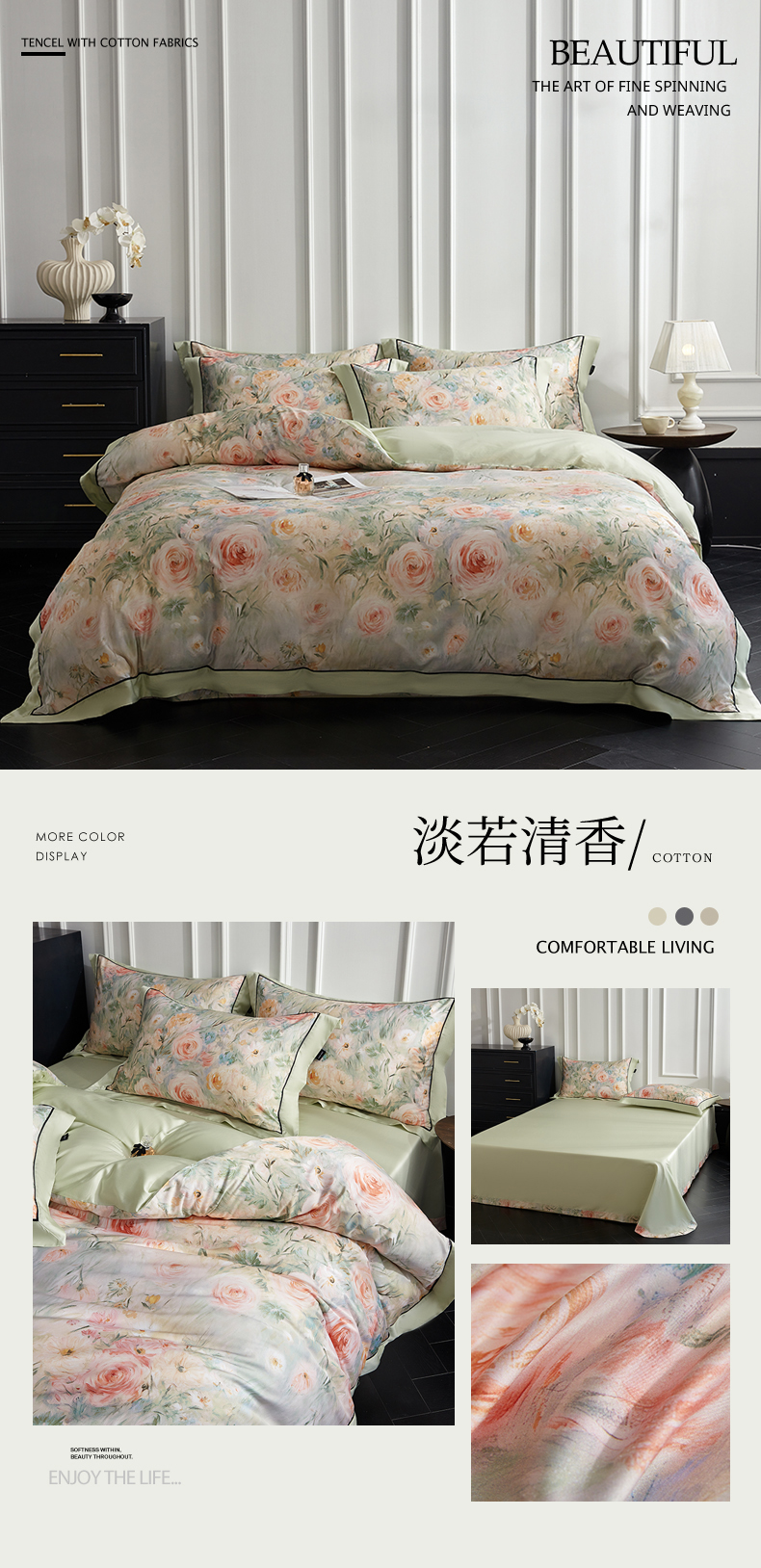 (总)洺兰家居 2026年新疆长绒棉100支天丝棉高端工艺款床单床笠四件套床上用品,淡若清香,陌上花开,羽墨