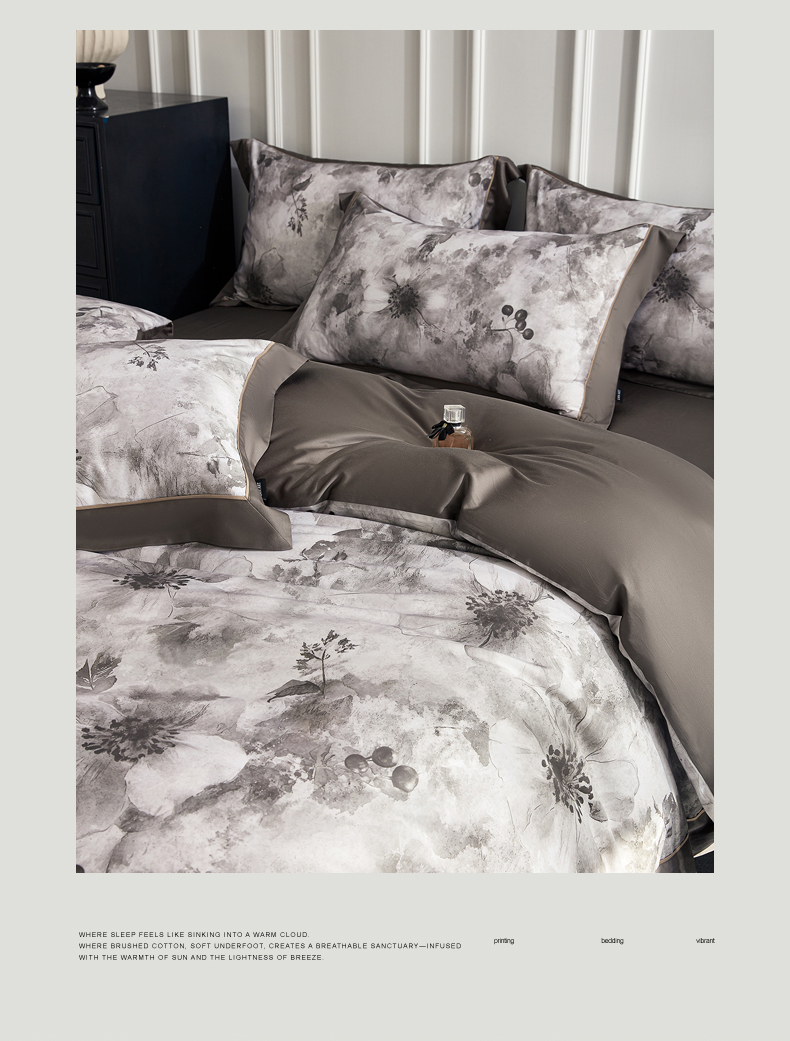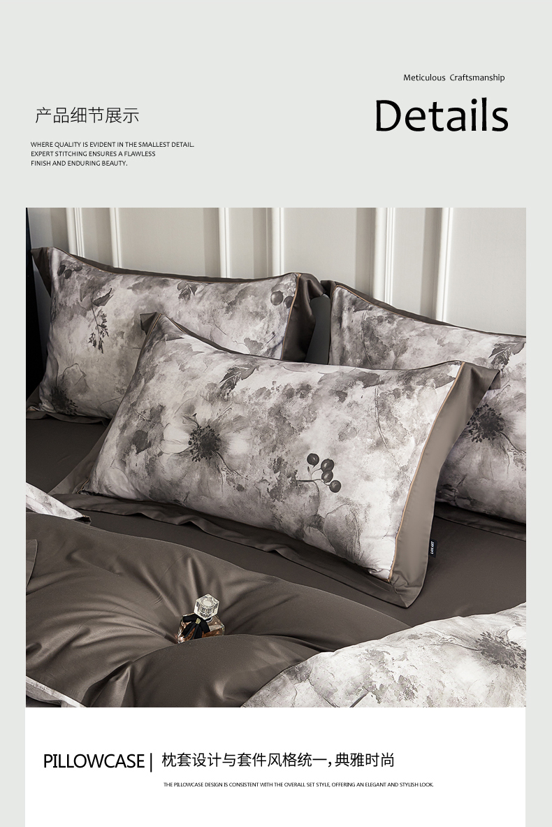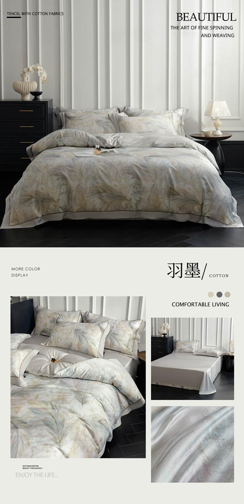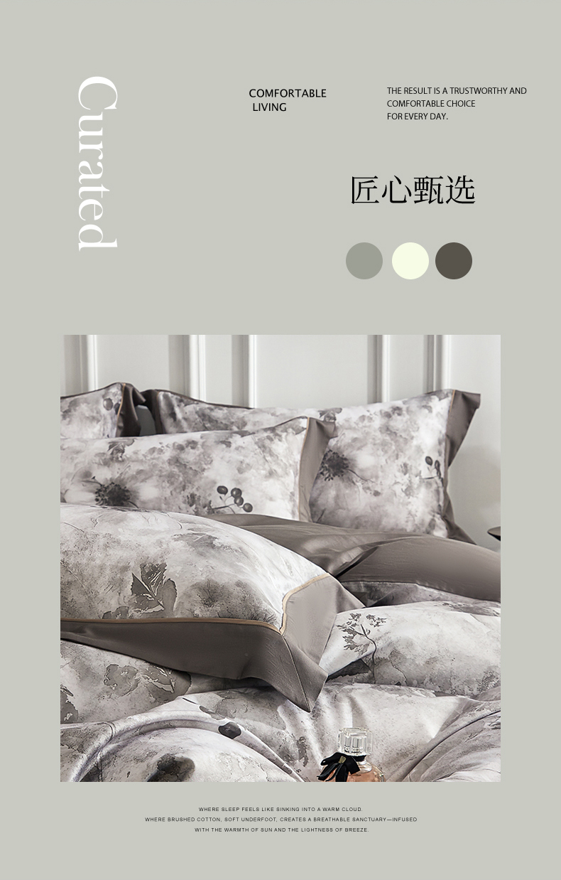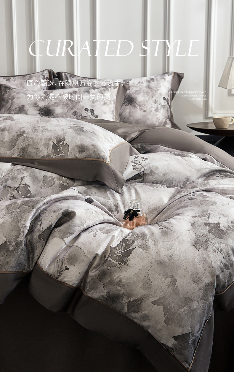 (总)洺兰家居 2026年新疆长绒棉100支天丝棉高端工艺款床单床笠四件套床上用品,淡若清香,陌上花开,羽墨