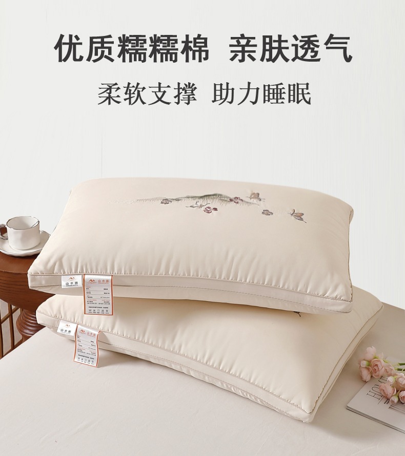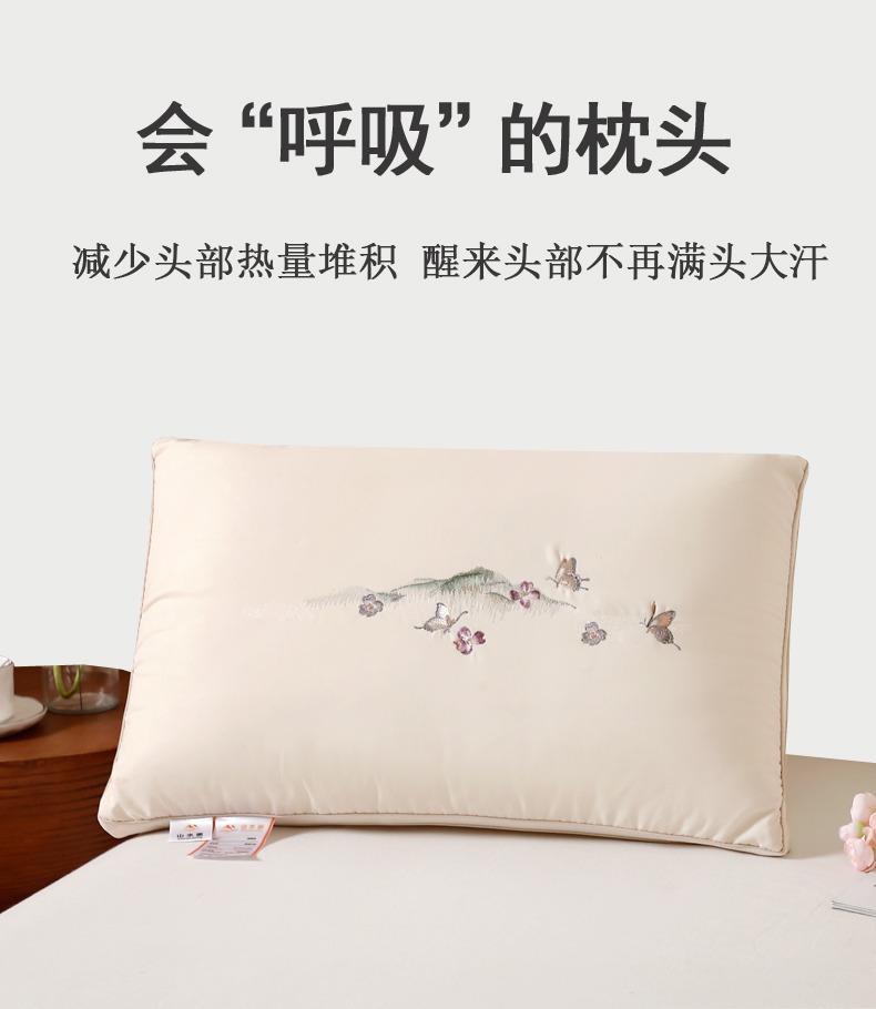 商品名称:佳尚枕芯 2025新款亲肤刺绣羽丝枕糯糯棉国风刺绣山水画枕芯枕头 山水画粉色