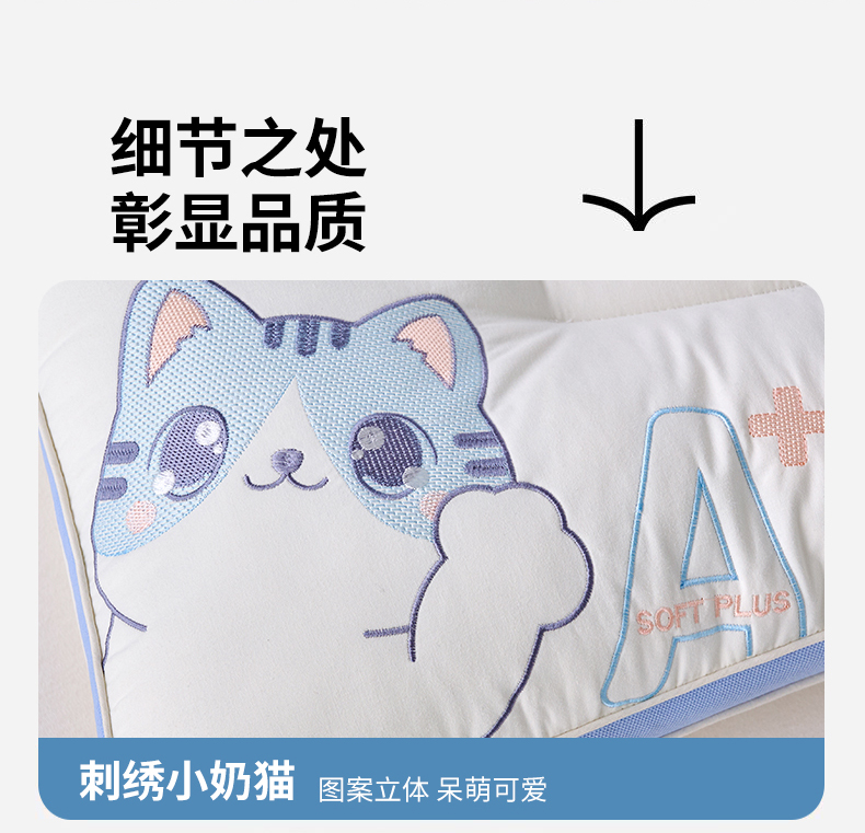 商品名称:鼎晟纺 2025新款全棉小奶猫亲子枕儿童学生枕头成人枕芯 蓝色小奶猫学生款-单只装
