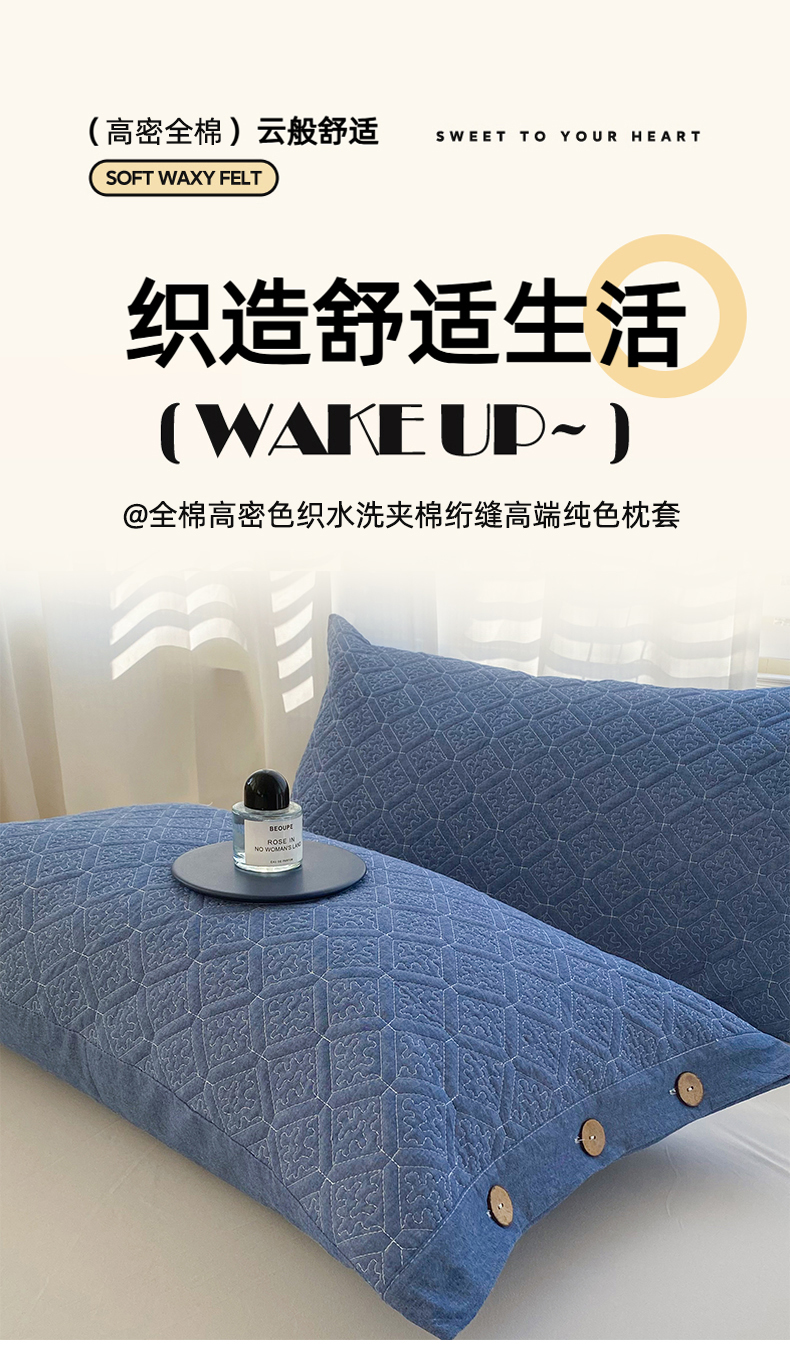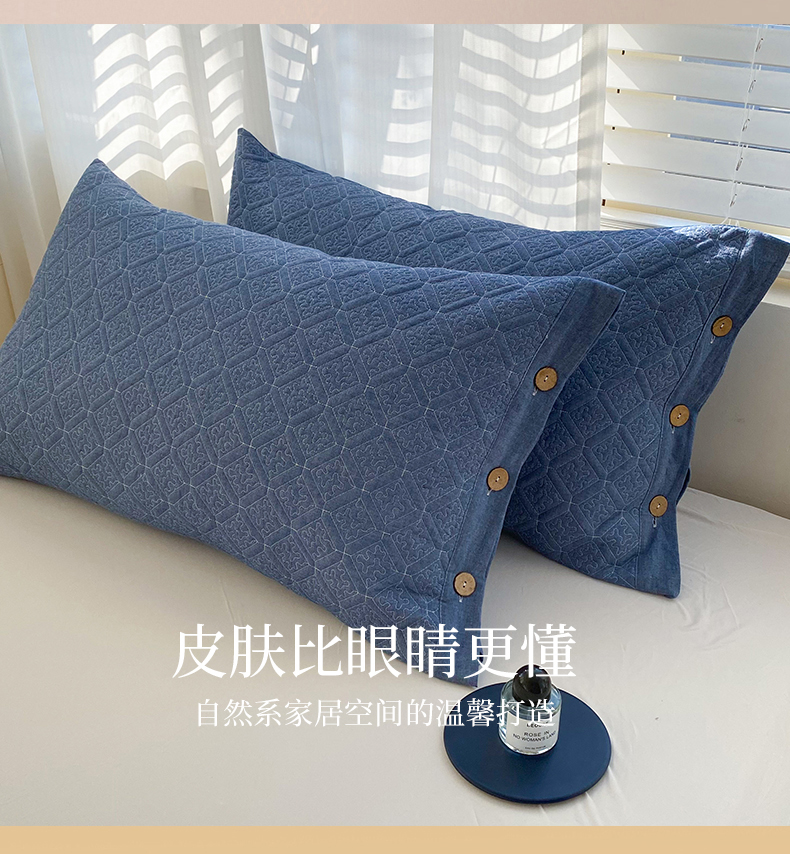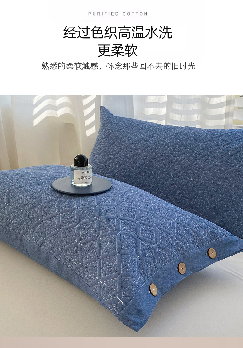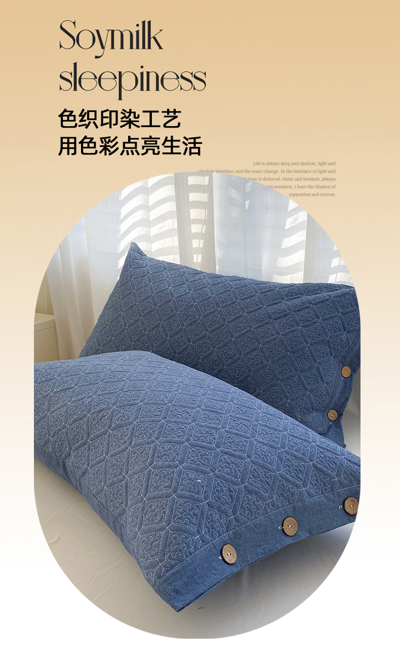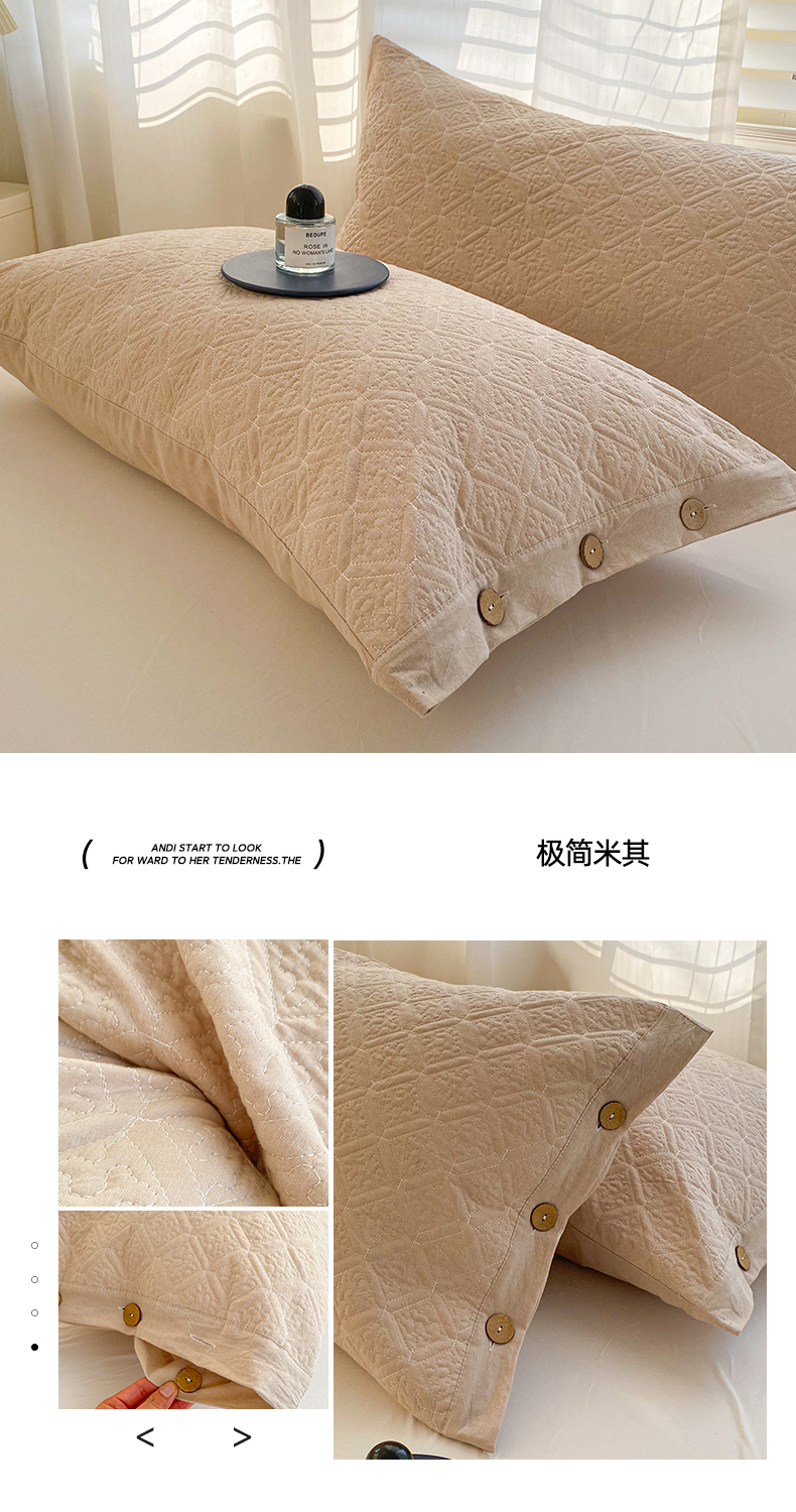 商品名称:美宜家 2026新款全棉枕头套高密色织水洗加棉绗缝高端纯色枕套 极简仔兰
