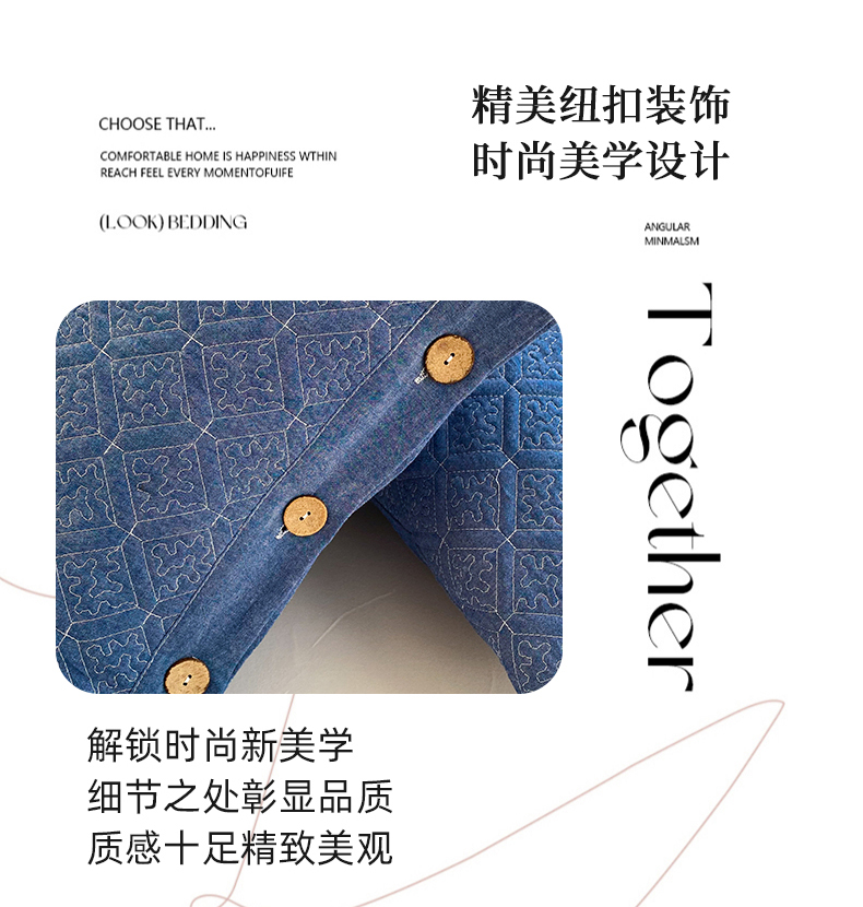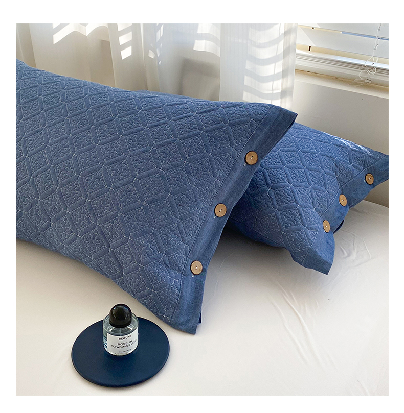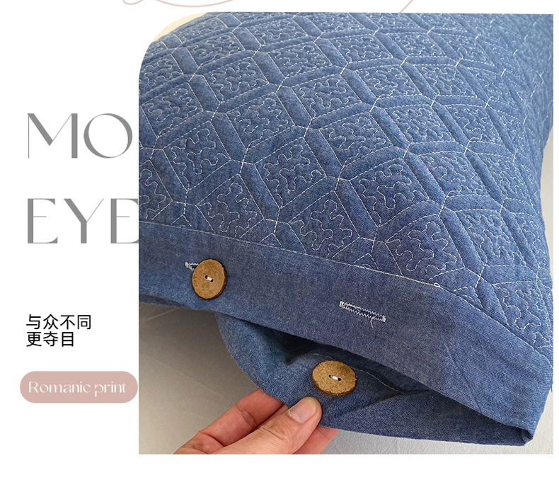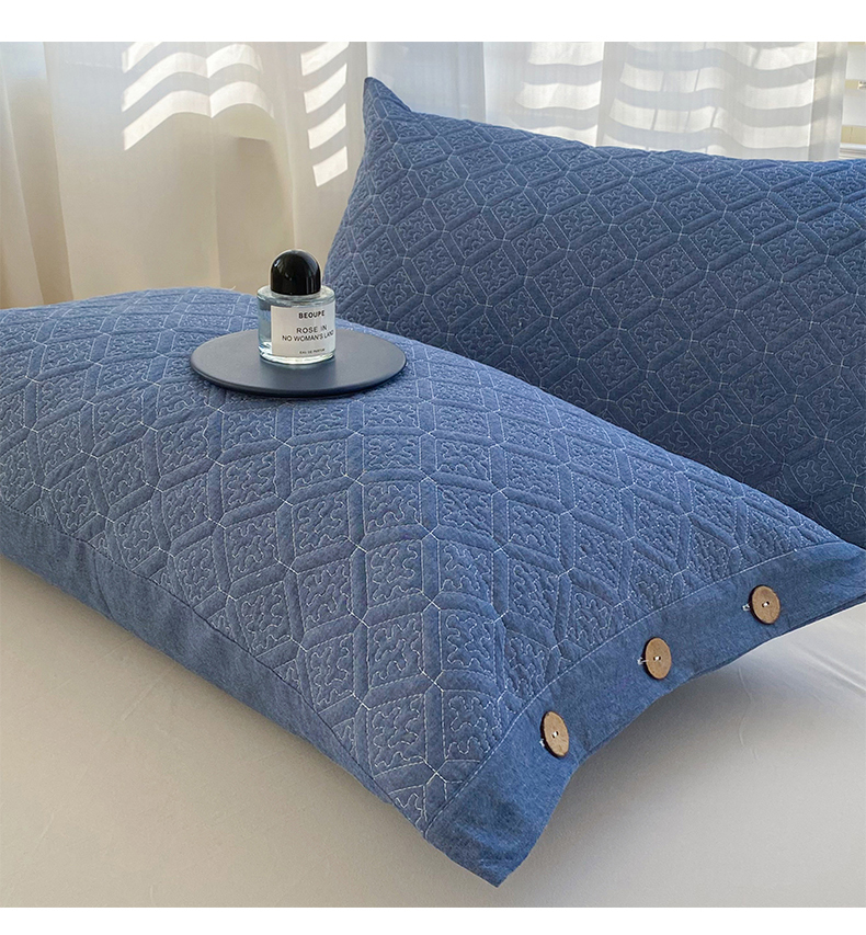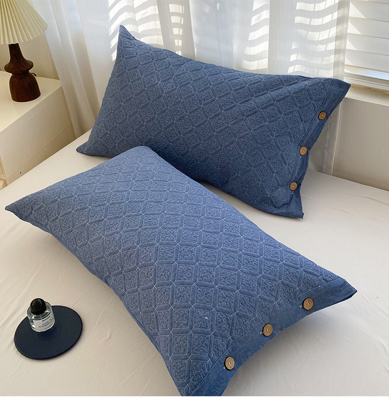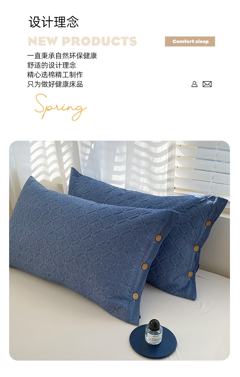 商品名称:美宜家 2026新款全棉枕头套高密色织水洗加棉绗缝高端纯色枕套 极简仔兰
