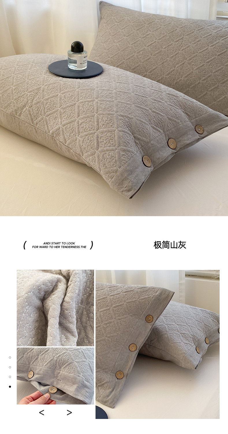 (总)美宜家 2026新款全棉枕头套高密色织水洗加棉绗缝高端纯色枕套,极简山灰,极简米其,极简兰灰,极简仔兰