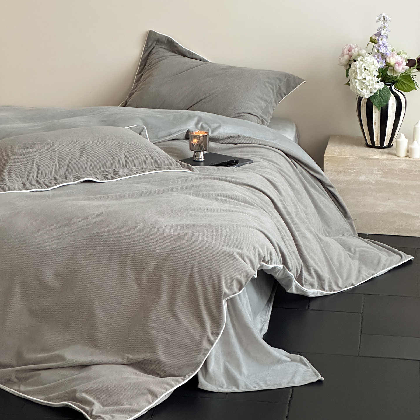 (总)ONE TWO ONE 1212025新款100S长绒棉纯棉活性印染提花四件套雪落绒花风格二【为了各位老板们都有利润空间,平台控价券后不得低于228/318/338元,感谢您的配合与支持!】,雪落绒花-灰,雪落绒花-烟紫