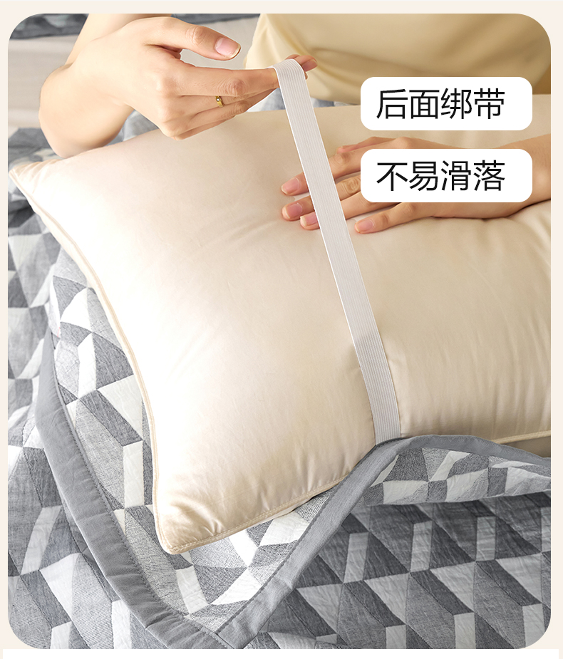 商品名称:棠薇家纺 2025新款提花绑带款枕巾棉纱布枕巾夹棉枕头巾 菱格灰