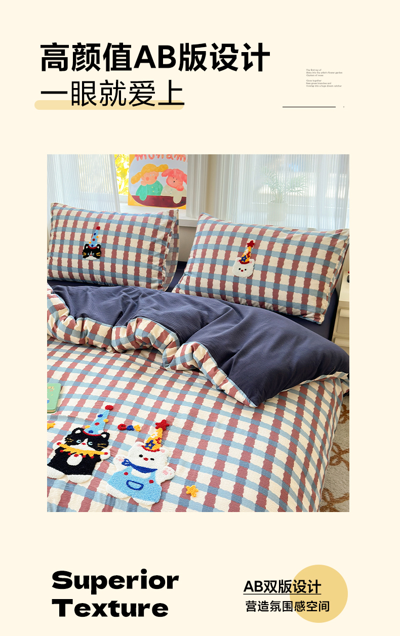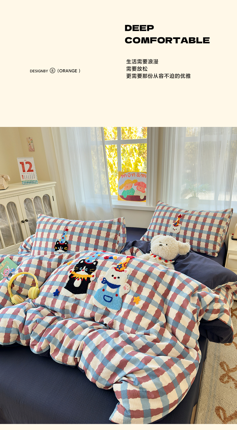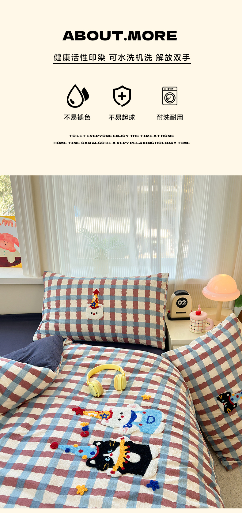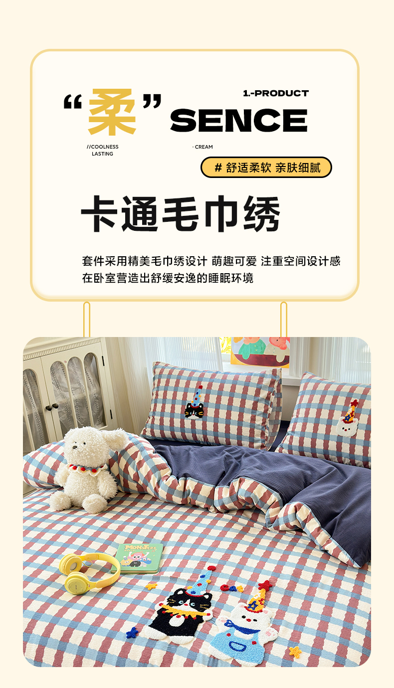 当前位置: 91家纺网 > 商品网购 > 床品套件 > 四件套 > 水洗棉四件套 > 奈颜 2026新款超柔水洗皱皱棉毛巾绣四件套 萌宠派对