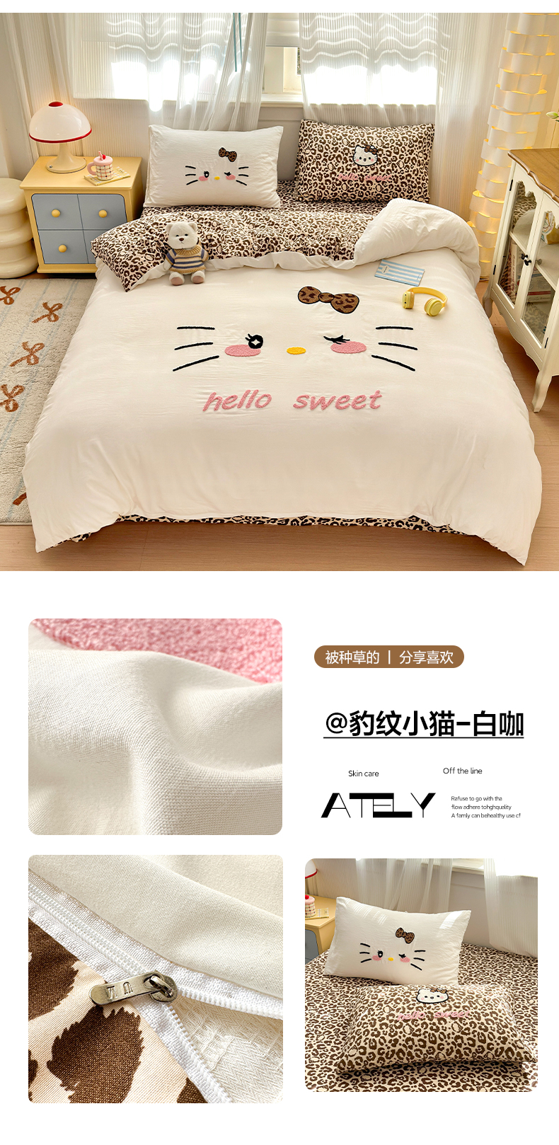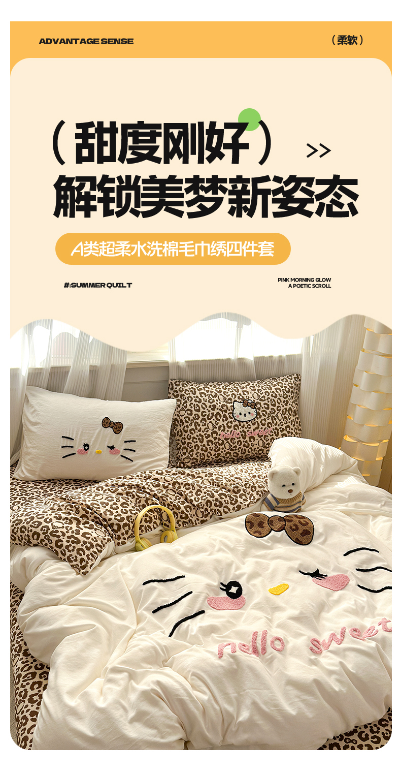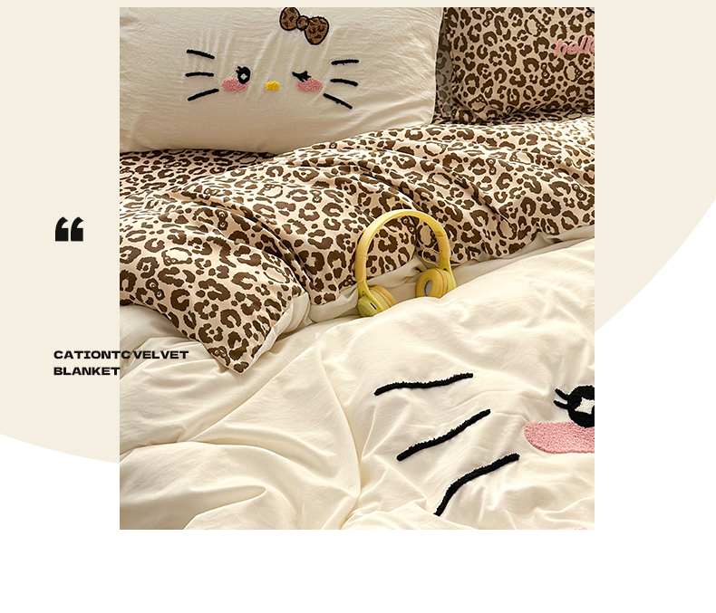当前位置: 91家纺网 > 商品网购 > 床品套件 > 四件套 > 水洗棉四件套 > 奈颜 2026新款A类水洗棉大版毛巾绣豹纹小猫四件套--影棚图 豹纹小猫-白咖
