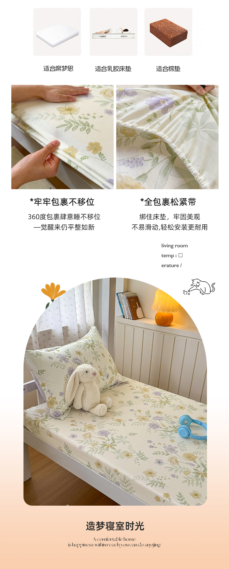 尚帛 2026新款全棉品质喷气印花爆款四件套 多规格套件 单品系列-学生款单床笠 爱的花海