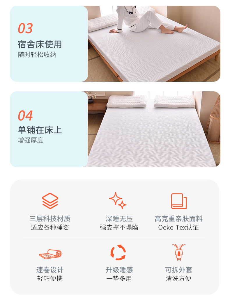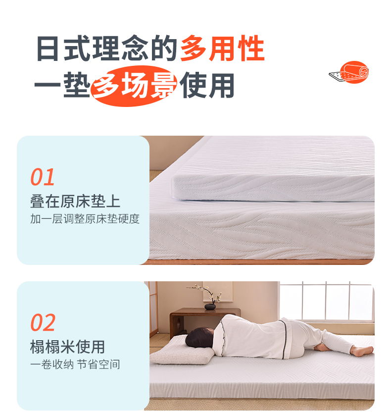 (总)小豚鼠 2025新款跨境日式床垫民宿加厚榻榻米床垫大豆纤维透气宿舍床褥垫酒店批发,白色,蓝色,灰色