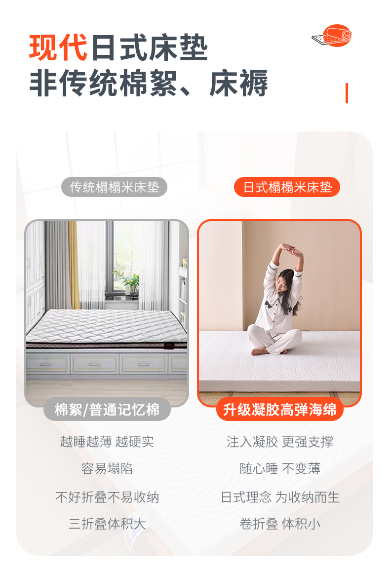 • 91家纺网 家纺一手货源 找家纺 小豚鼠 2025新款高弹记忆海绵垫现代日式床垫 摇曳-白