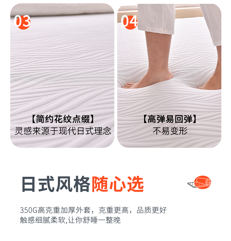 • 91家纺网 家纺一手货源 找家纺 (总)小豚鼠 2025新款高弹记忆海绵垫现代日式床垫,纹理-白,纹理-灰,摇曳-白