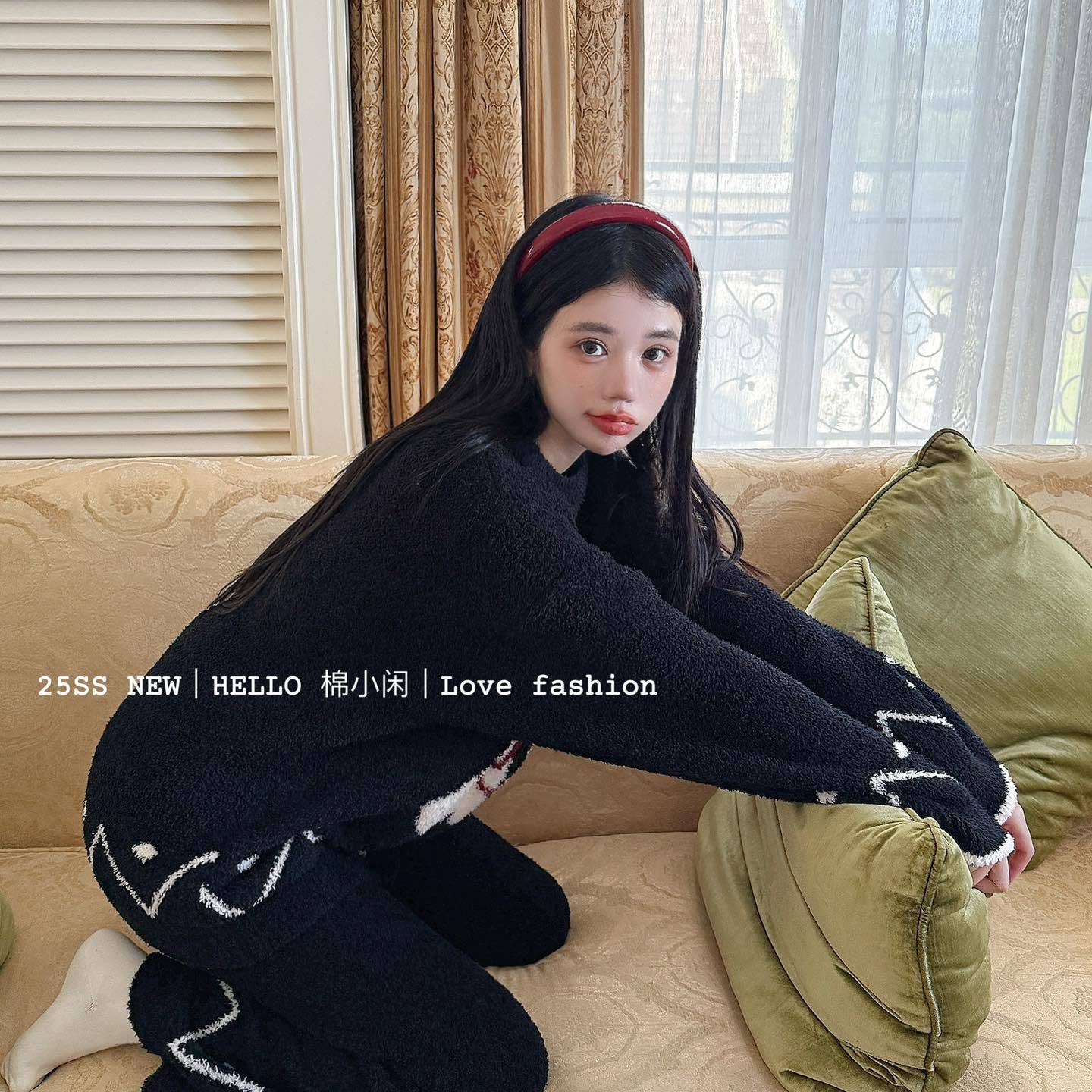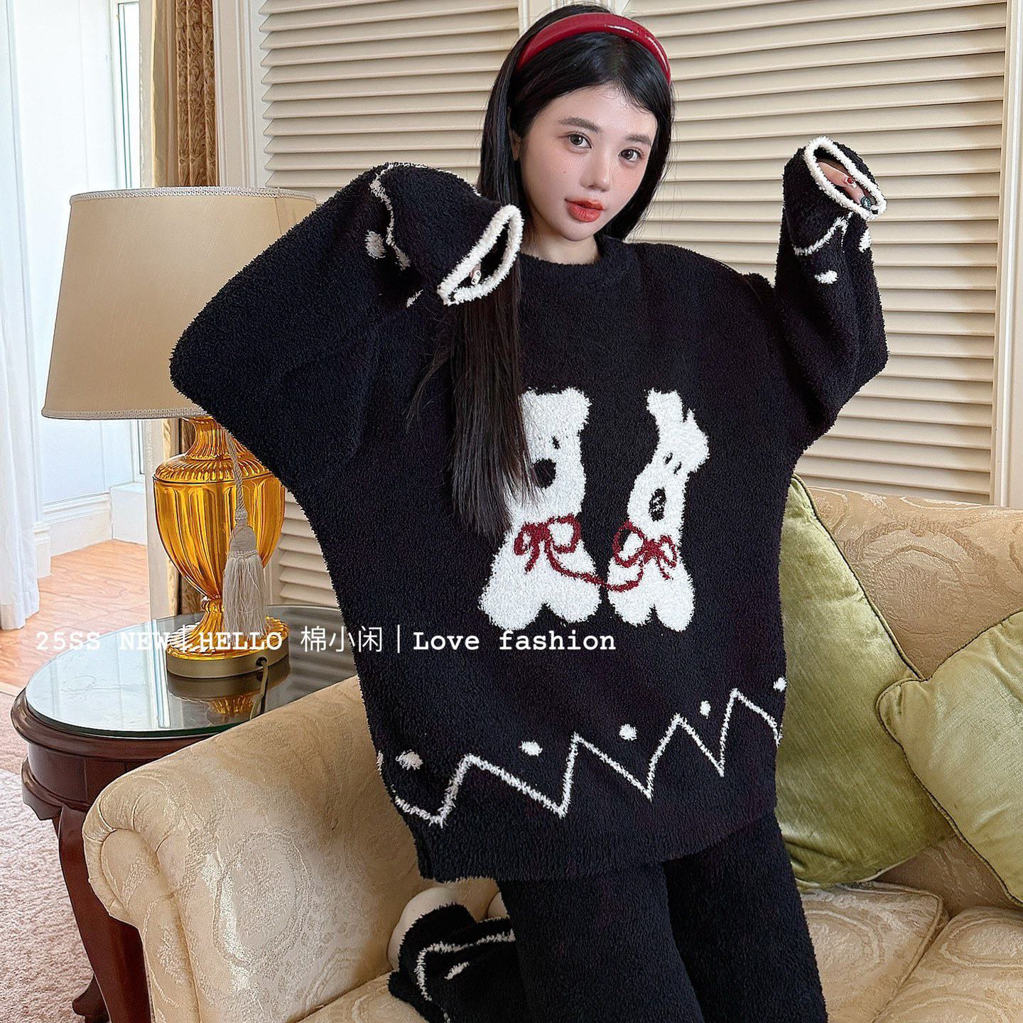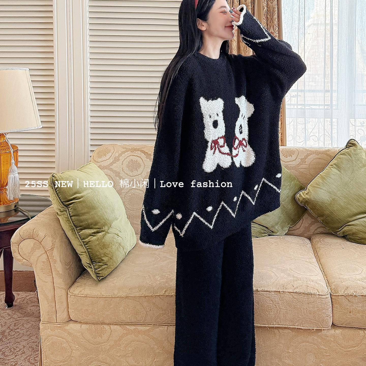 当前位置: 91家纺网 > 商品网购 > 居家日用 > 睡衣 > (总)妍景家居生活馆 2026新款软绵绵蝴蝶结狗狗黑家居服睡衣套装