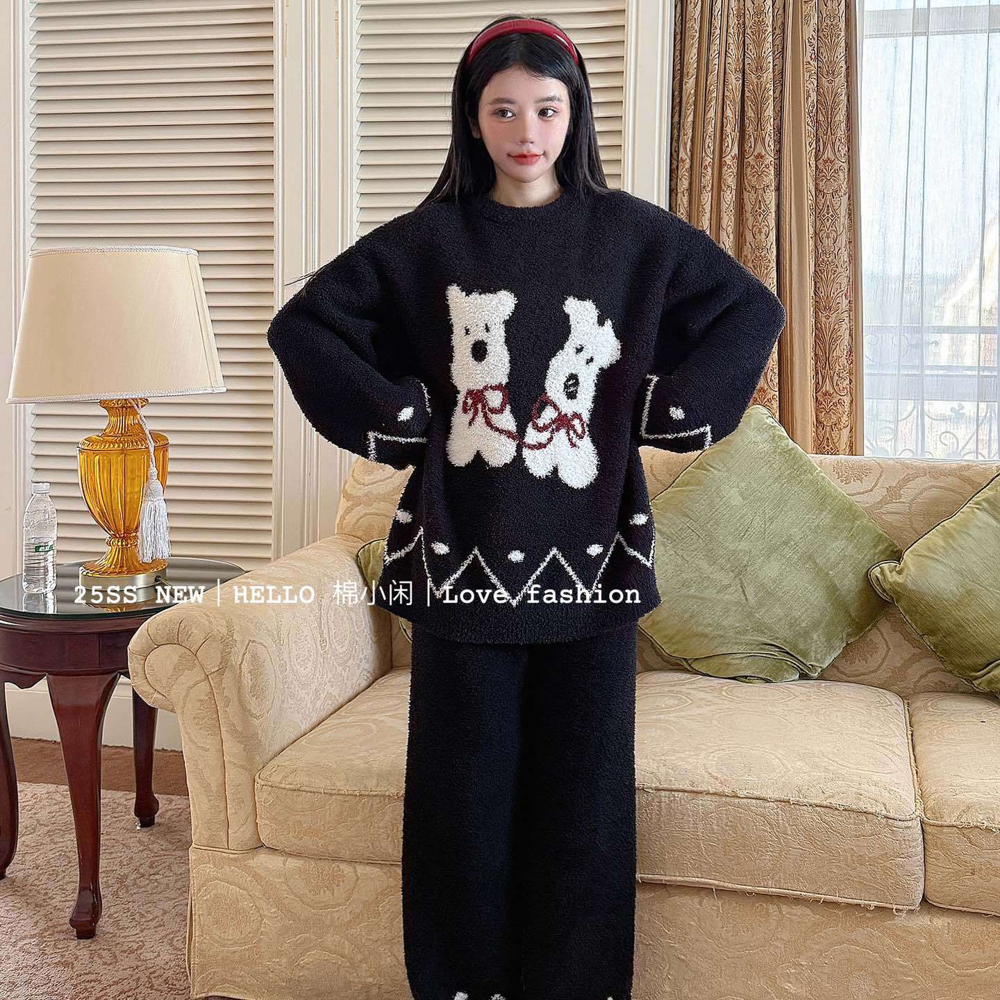 • 91家纺网 家纺一手货源 找家纺 (总)妍景家居生活馆 2026新款软绵绵蝴蝶结狗狗黑家居服睡衣套装