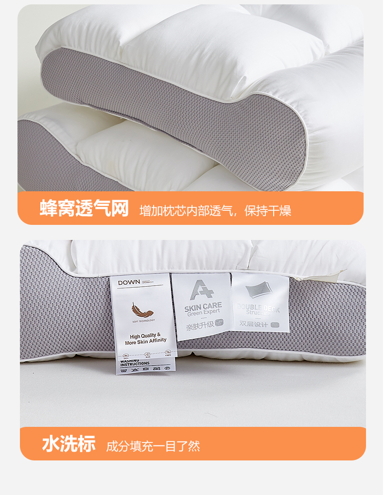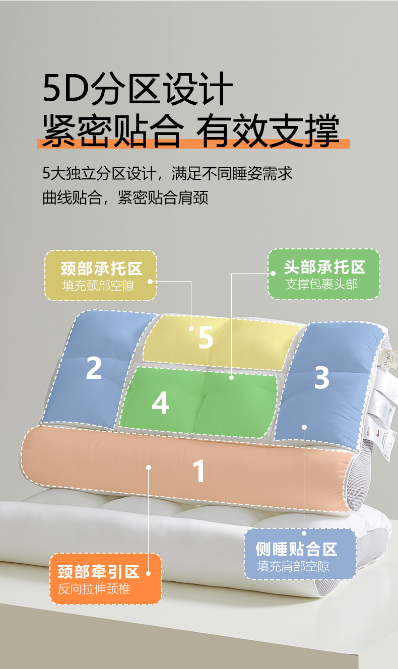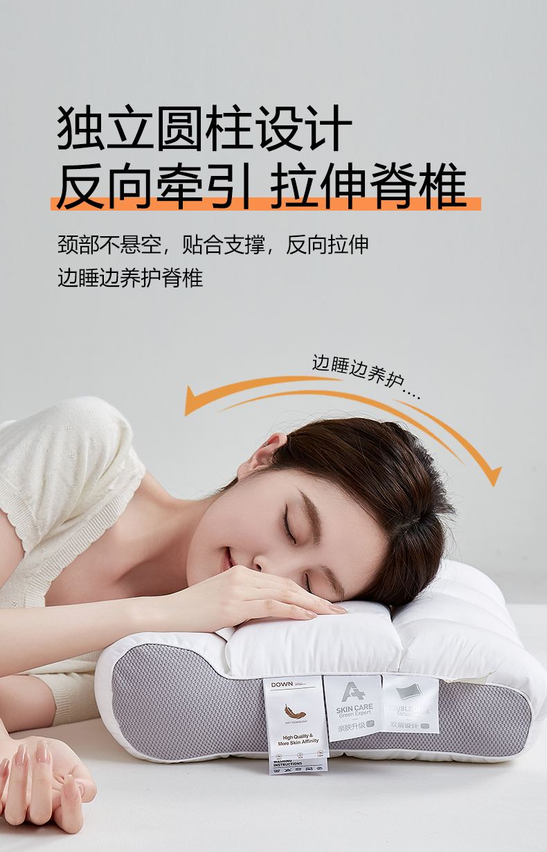 (总)乐可 2025新款分区两用牵引枕全棉双向枕 枕头枕芯,分区两用牵引枕