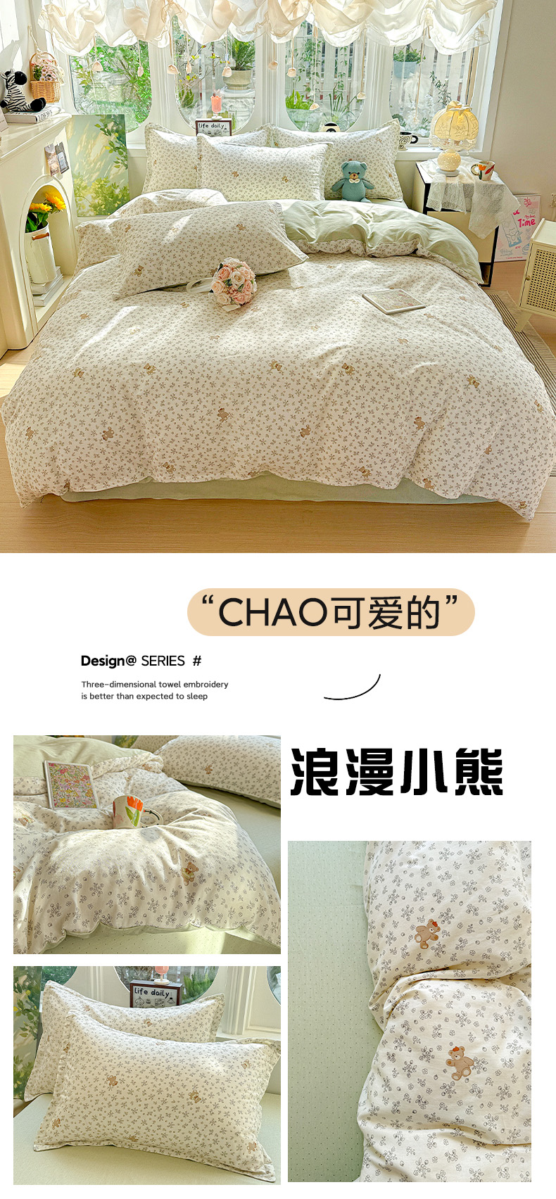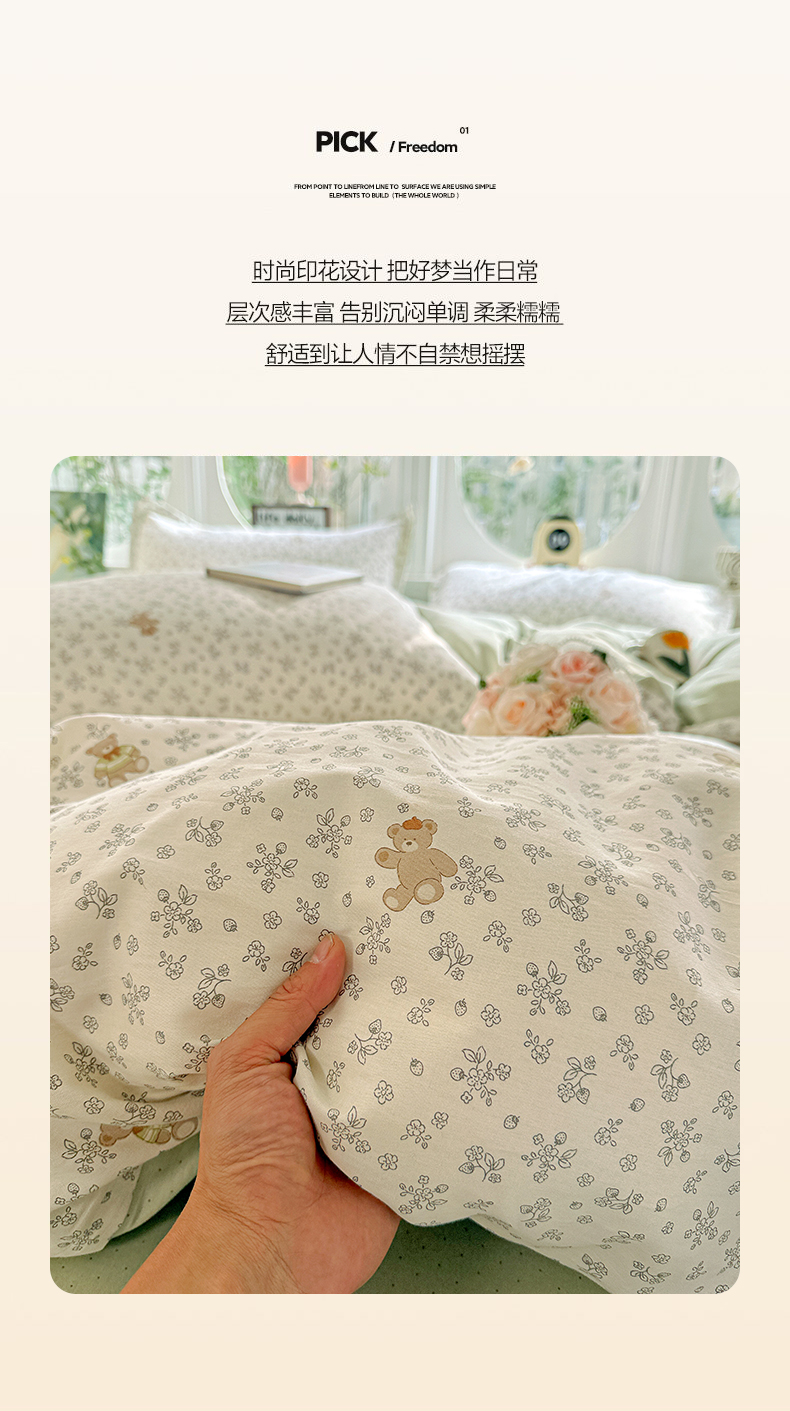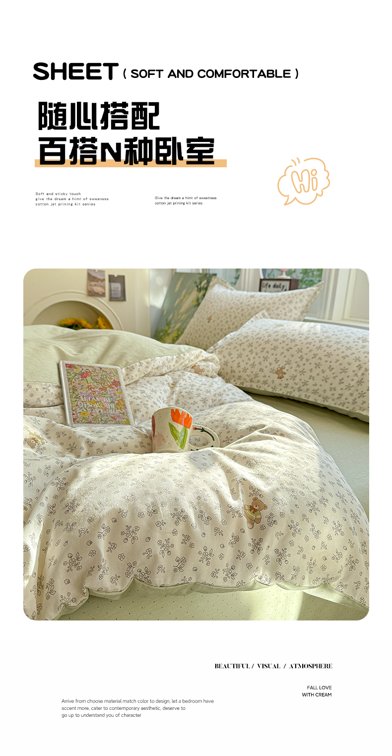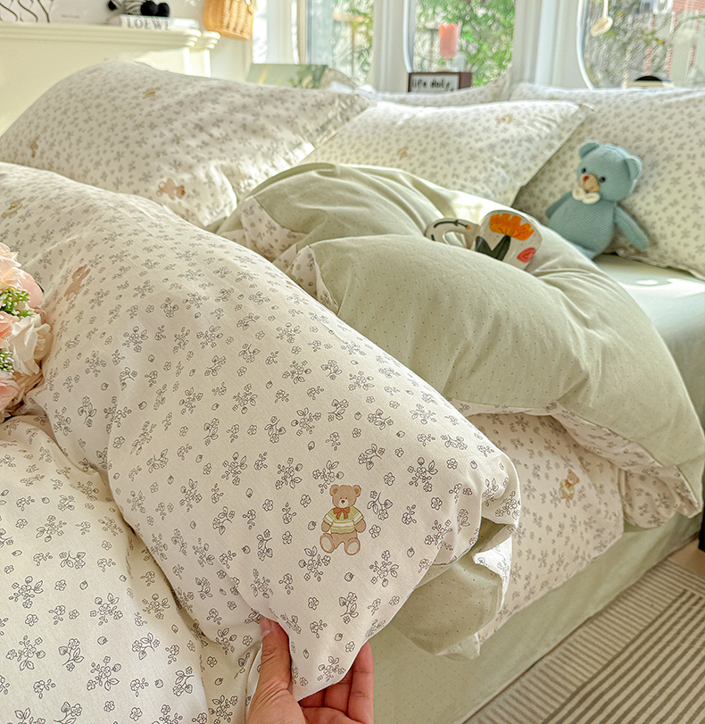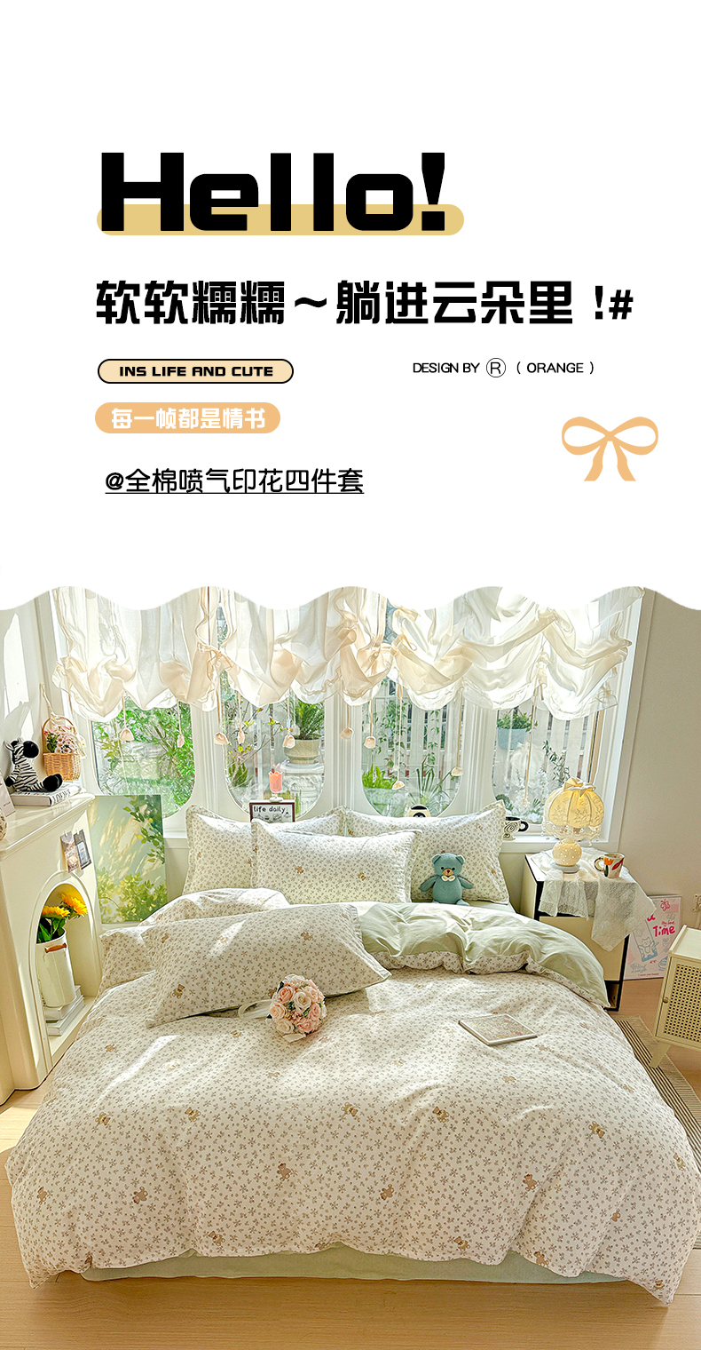 当前位置: 91家纺网 > 商品网购 > 床品套件 > 四件套 > 全棉普通四件套 > 卡普纯棉全棉四件套13070喷气床单款床笠款三件套 浪漫小熊