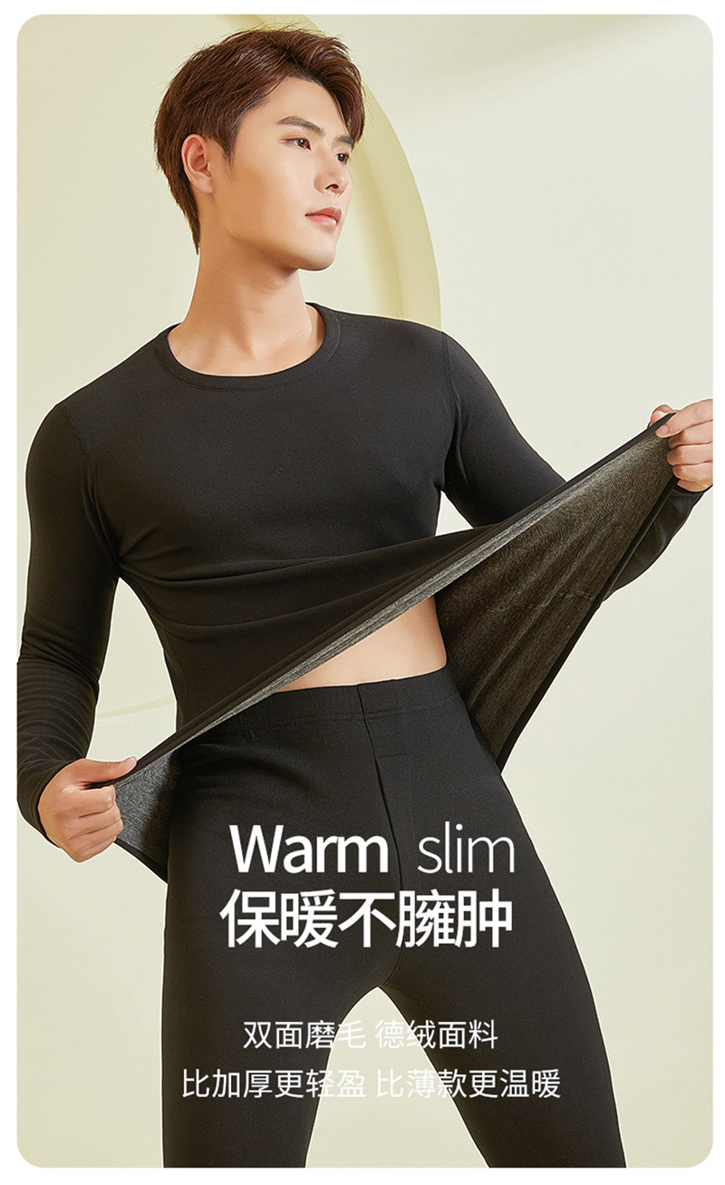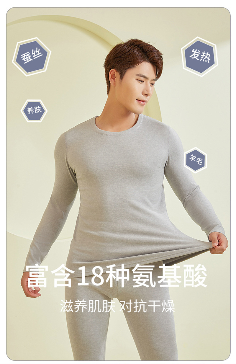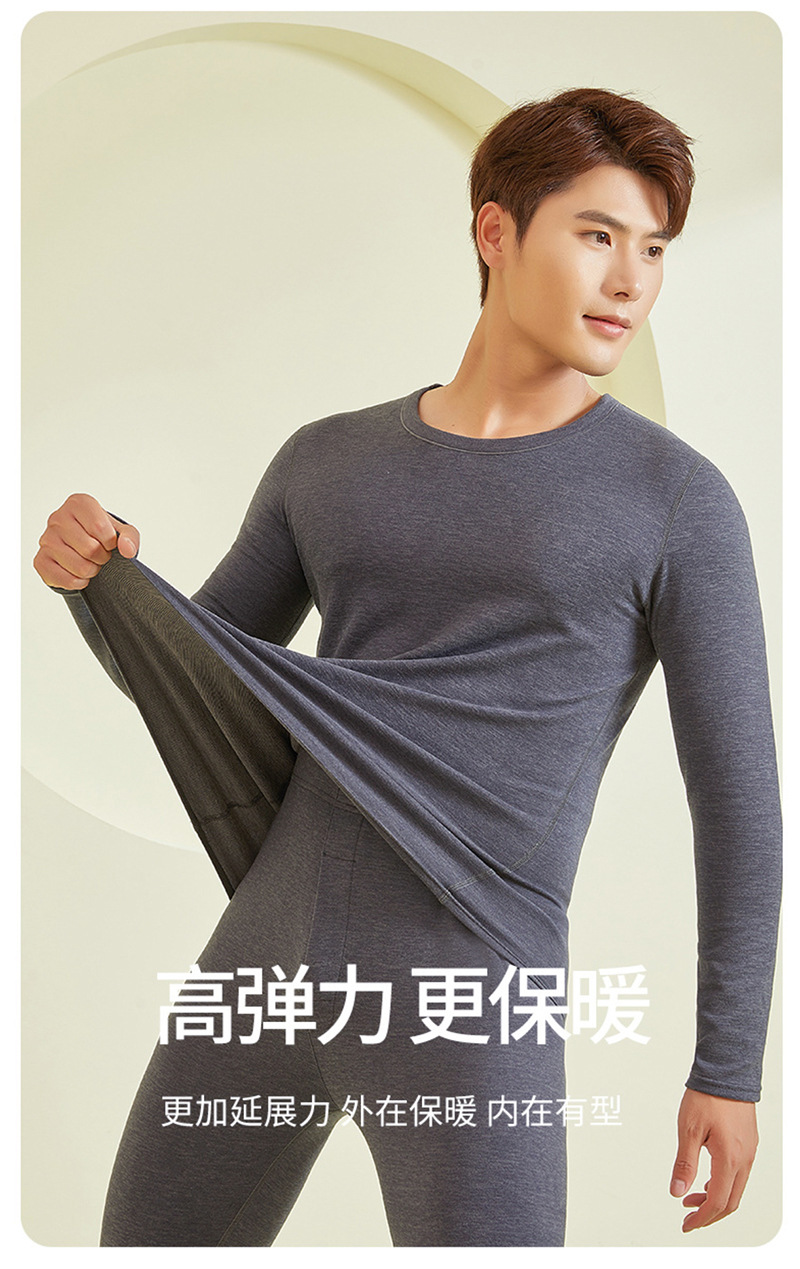 商品名称:良品汇馆 2026新款【加厚德绒男内衣】德绒保暖内衣圆领男士秋衣秋裤套装羊毛蚕丝加厚新款 德绒男-深灰
