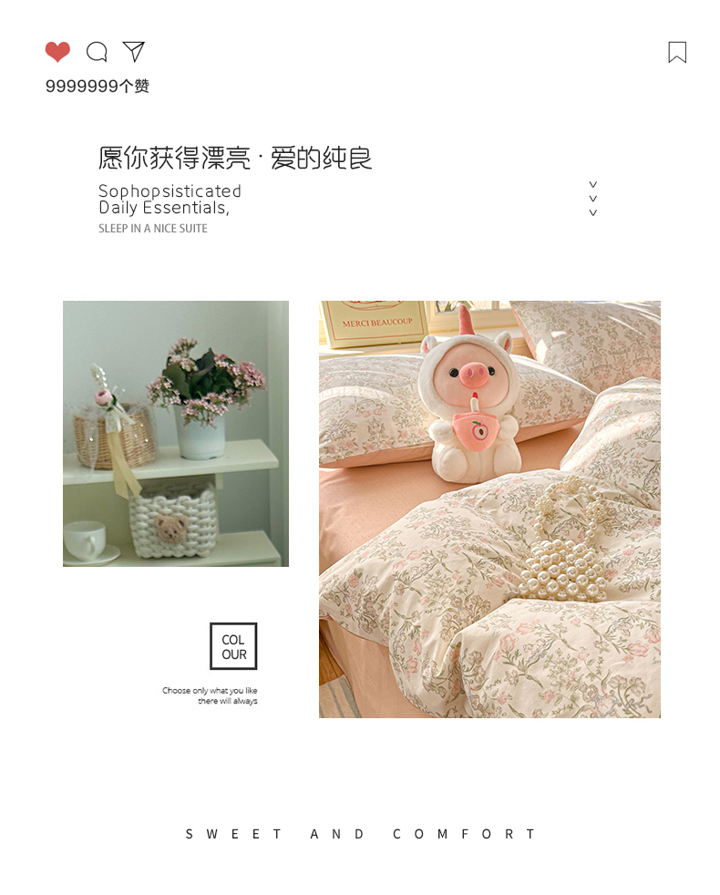 当前位置: 91家纺网 > 商品网购 > 床品套件 > 四件套 > 全棉普通四件套 > 瑞莱 2026新款全棉印花13070花卉系列四件套 闻花语