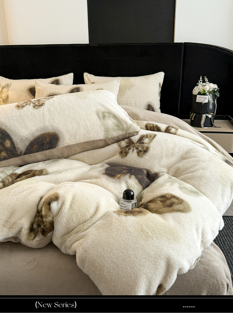 良品汇馆 2026新款【小米貂绒套件】秋冬保暖四件套良品绒布加厚床品牛奶绒冬天印花 小米貂-棕影绘花