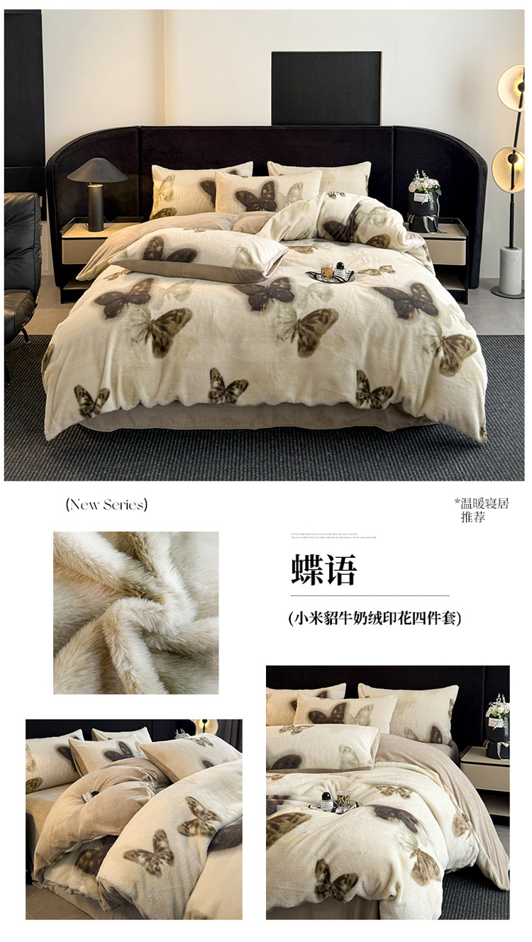 【小米貂绒套件】秋冬保暖四件套良品绒布加厚床品牛奶绒冬天印花,小米貂-蝶语,小米貂-秋华,小米貂-心上玫瑰,小米貂-墨韵花影,小米貂-墨染花簇,小米貂-棕影绘花