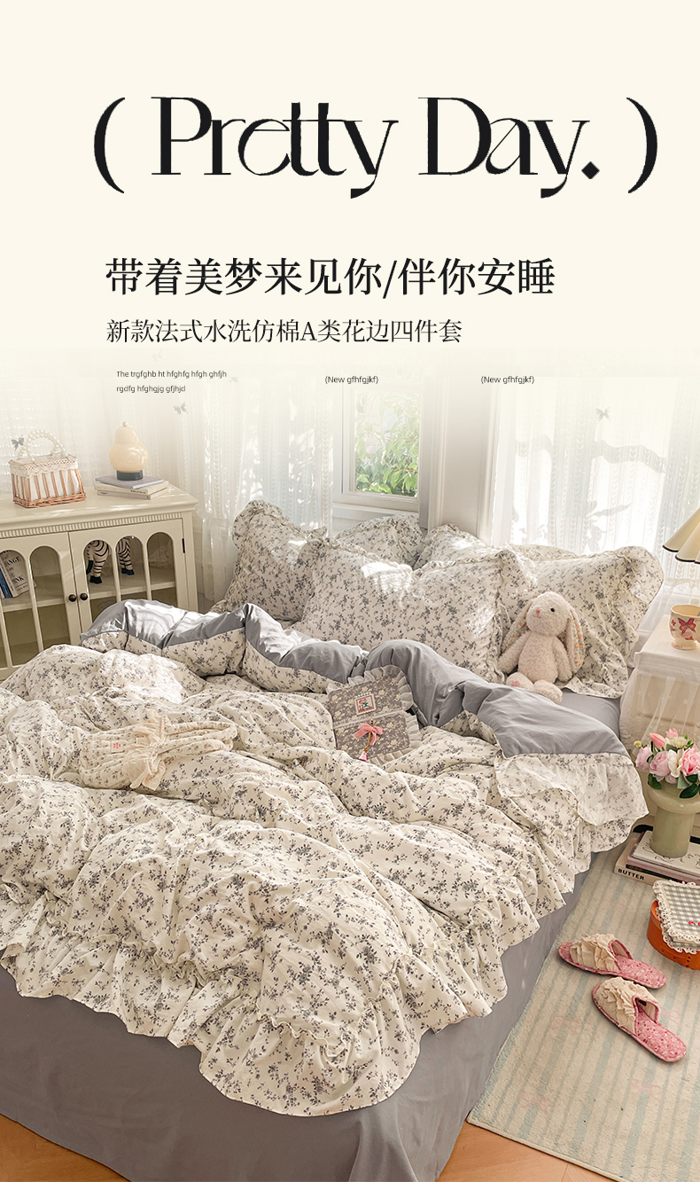 当前位置: 91家纺网 > 商品网购 > 床品套件 > 四件套 > 其它四件套 > 优佳优品 2026新款A类仿棉水洗法式工艺花边四件套 秘密花园