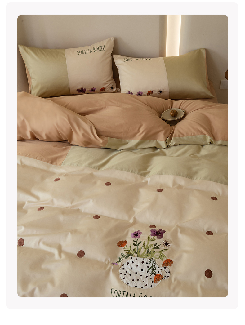 (总)波比可可 2026新款50s长绒棉纯棉全棉居家轻奢刺绣四件套,小比熊,花卉,咖啡猫,快乐狗,快乐喵,礼物,兔子