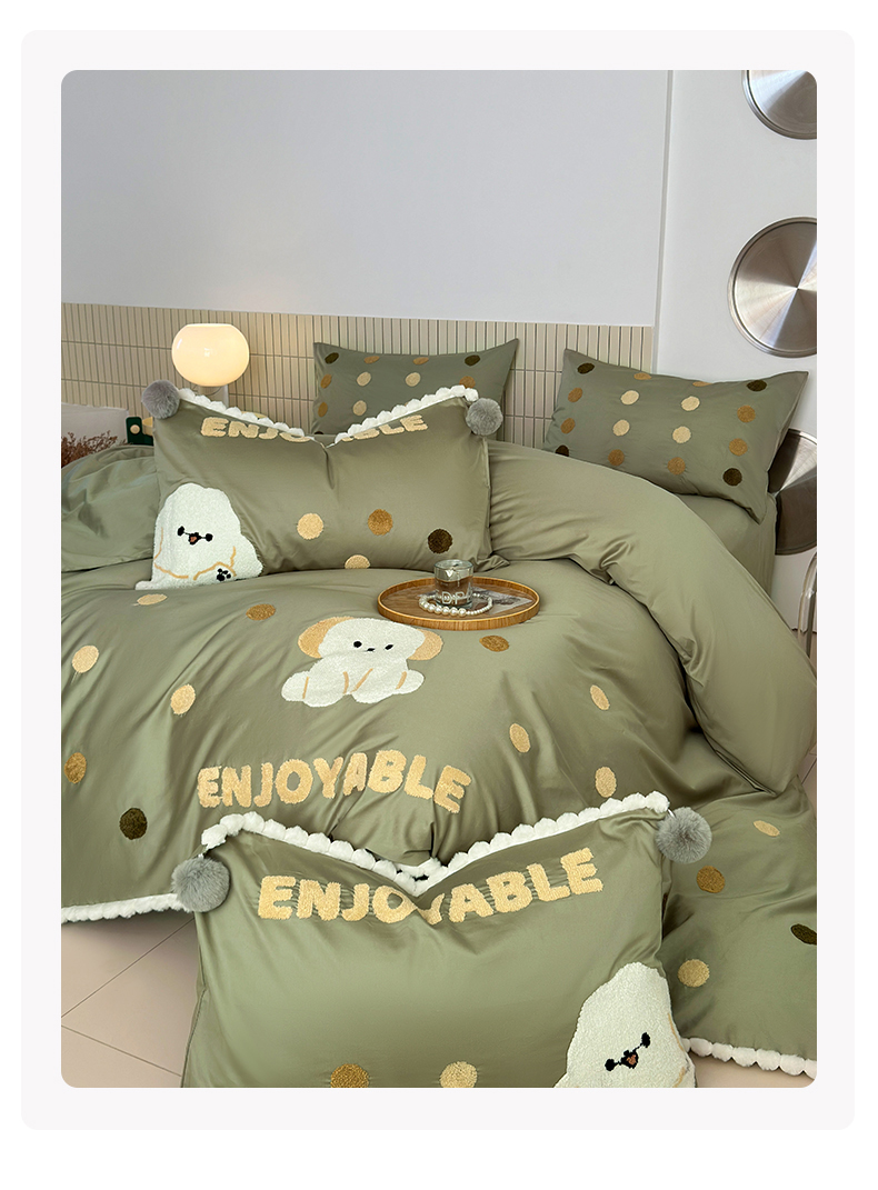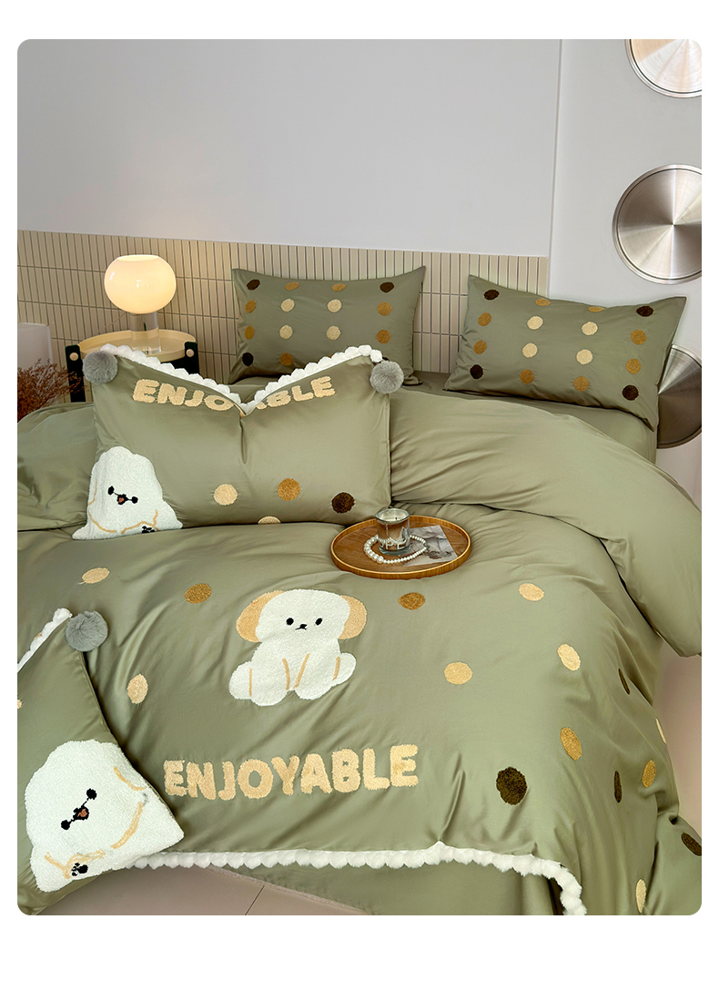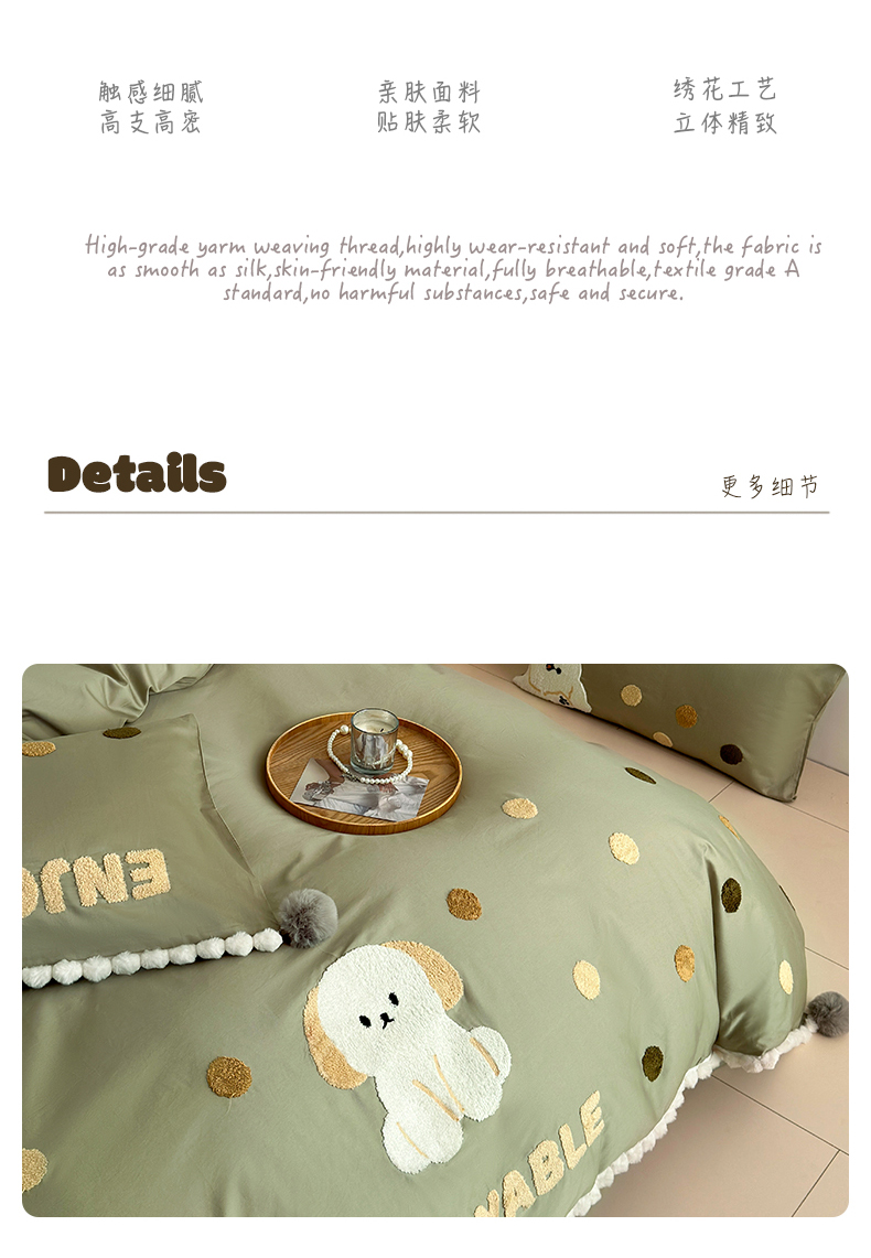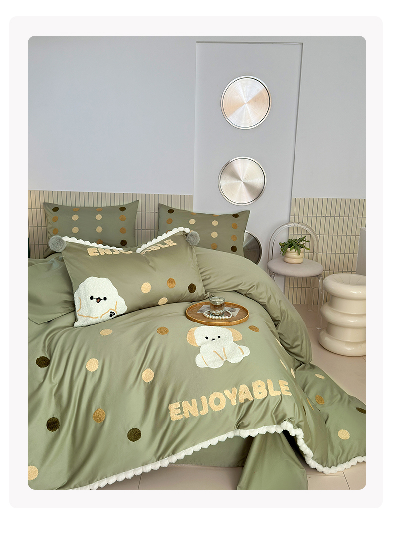 波比可可 2026新款50s长绒棉纯棉全棉居家轻奢刺绣四件套 小比熊