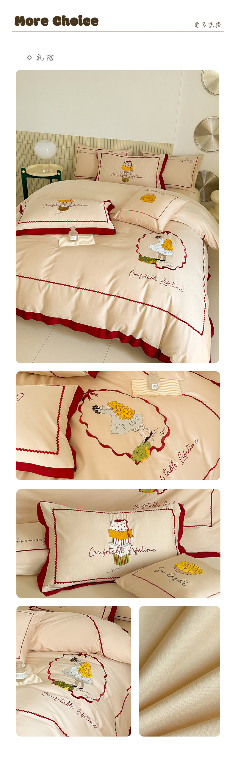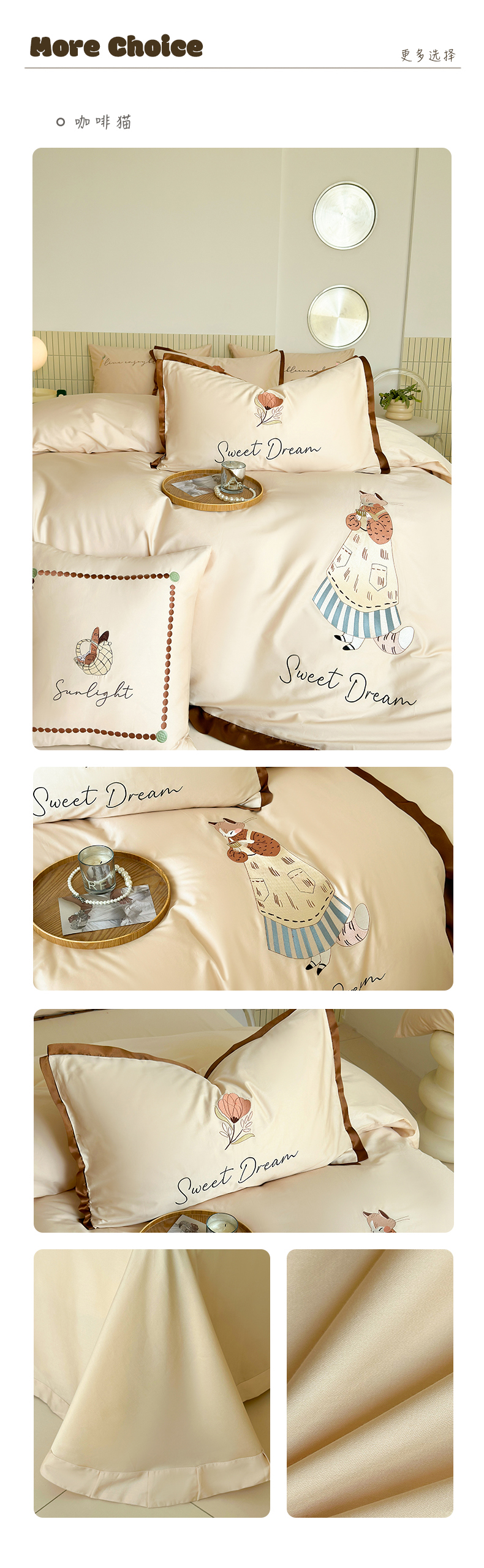 (总)波比可可 2026新款50s长绒棉纯棉全棉居家轻奢刺绣四件套,小比熊,花卉,咖啡猫,快乐狗,快乐喵,礼物,兔子