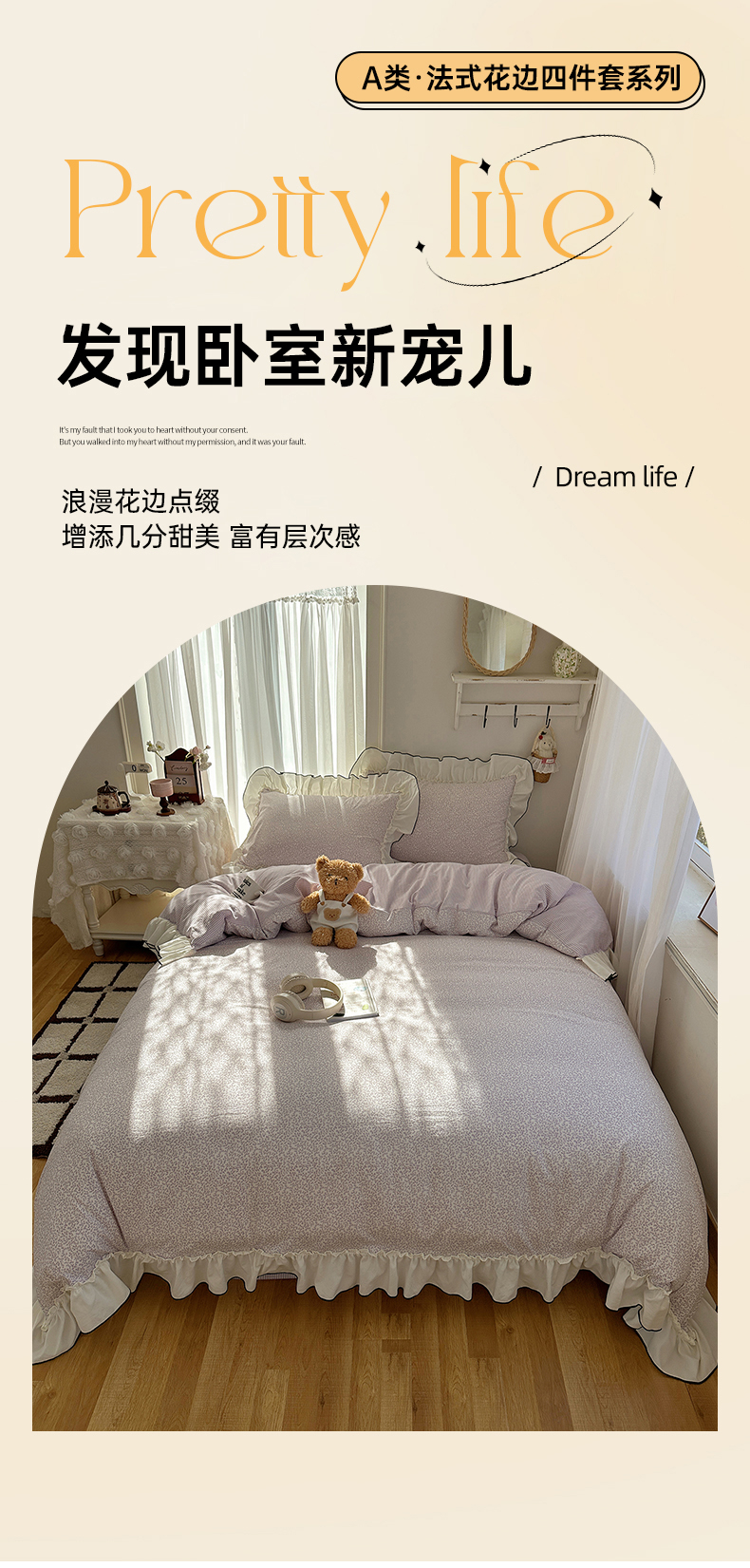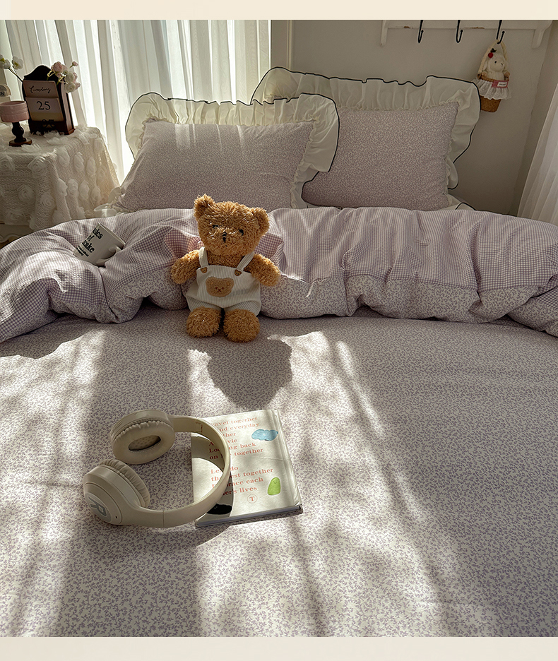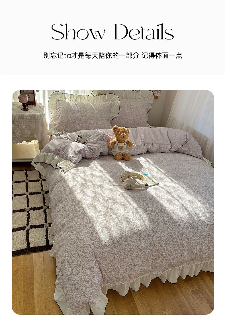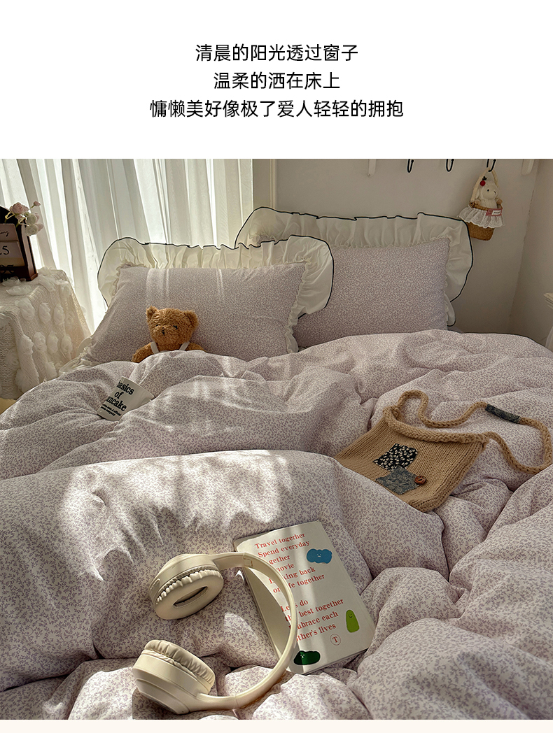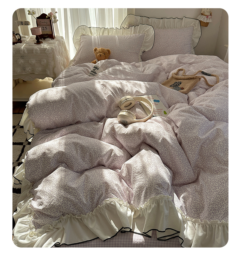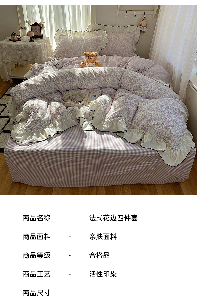 当前位置: 91家纺网 > 商品网购 > 床品套件 > 四件套 > 其它四件套 > 沐芷 2026 【提供买家秀】法式风花边四件套A类仿棉 简约小清新床上用品被罩被套 花边恋曲-紫