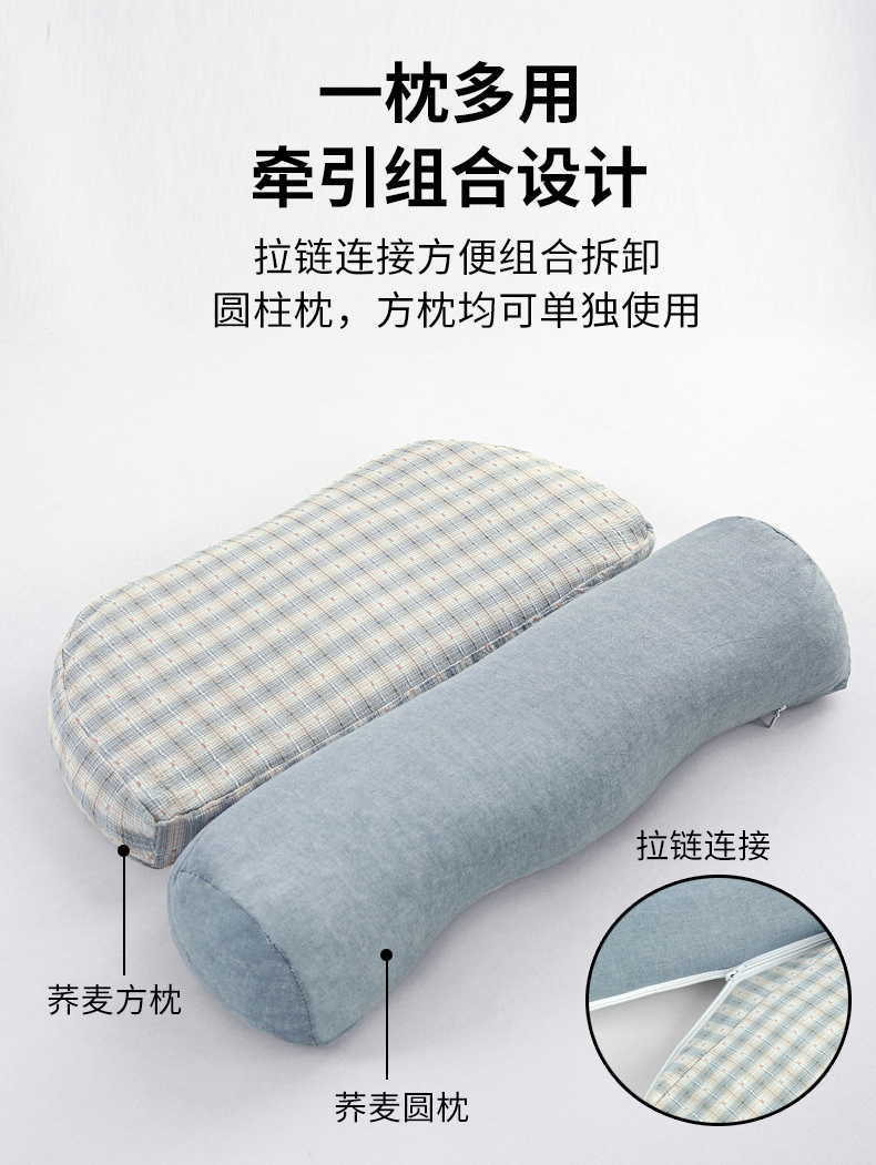 当前位置: 91家纺网 > 商品网购 > 枕头/枕芯/保健枕/颈椎枕 > 枕头枕芯 > 明星枕业 2026新款全荞麦壳枕头护颈椎全棉纯棉牵引组合枕成人家用枕芯反牵引护颈枕头枕芯 护颈牵引组合枕-蓝色