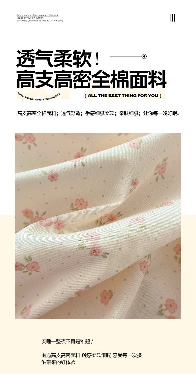 当前位置: 91家纺网 > 商品网购 > 床品套件 > 四件套 > 全棉普通四件套 > 梵克保罗 2026春夏新款ins小清新40支全棉13372四件套学生三件套单被套单枕套系列-第一批(四件套) 春之约定
