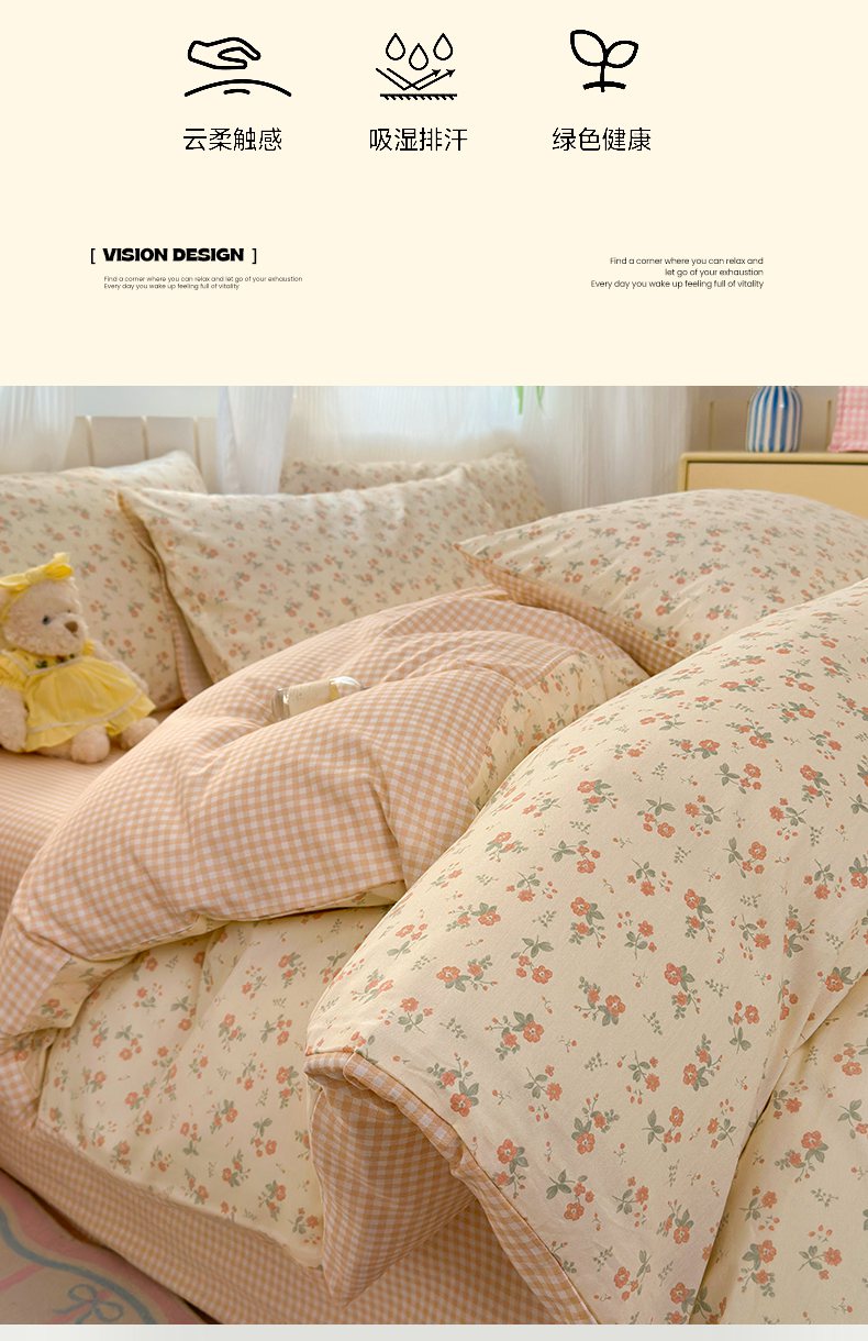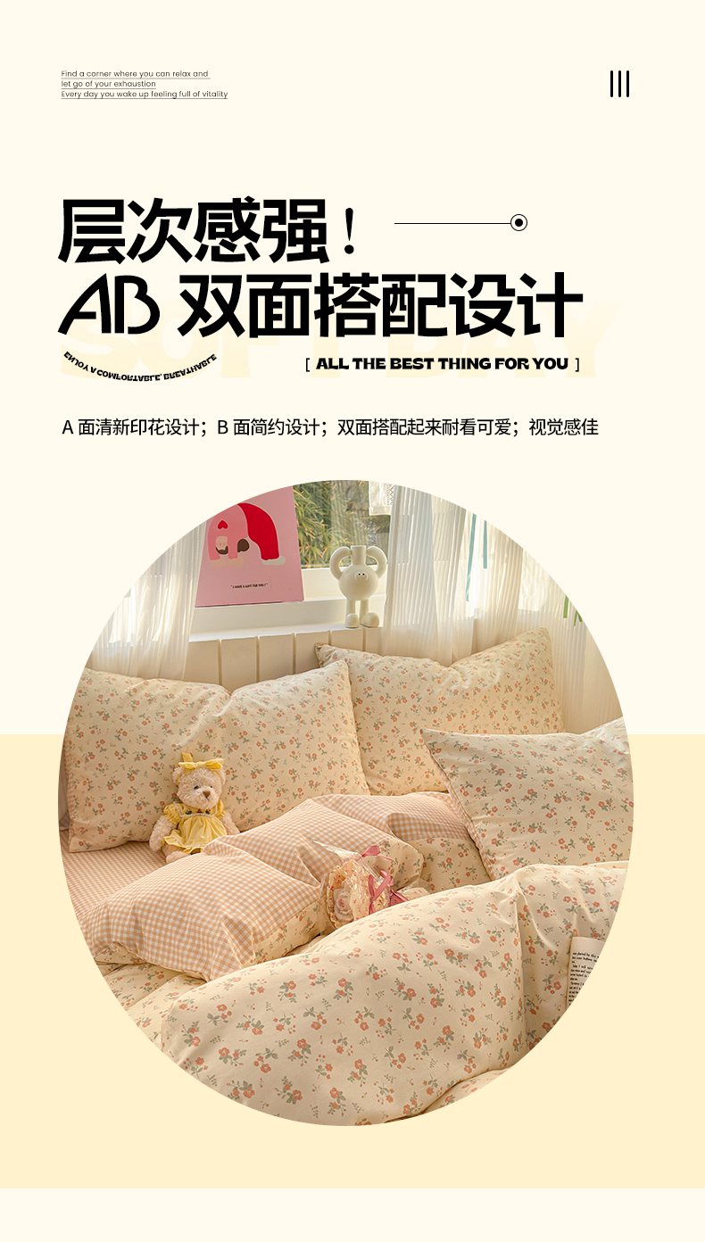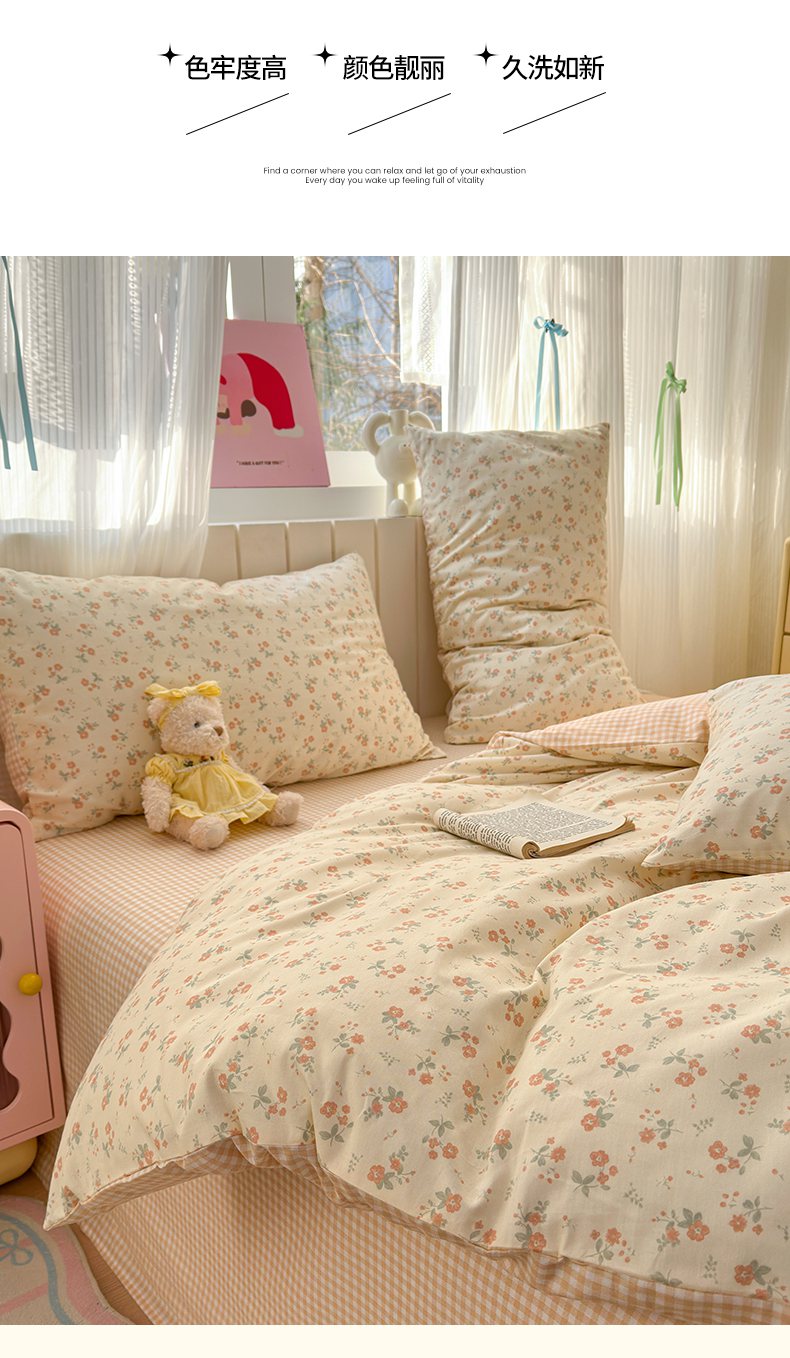 当前位置: 91家纺网 > 商品网购 > 床品套件 > 四件套 > 全棉普通四件套 > 梵克保罗 2026春夏新款ins小清新40支全棉13372四件套学生三件套单被套单枕套系列-第二批(四件套) 觅秋