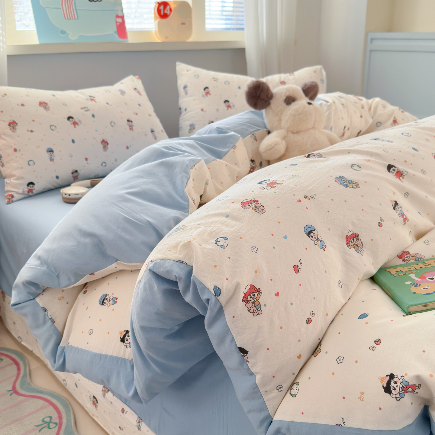 商品名称:德比尔斯 2026新款古法水洗仿棉云感棉小布袋四件套 童趣