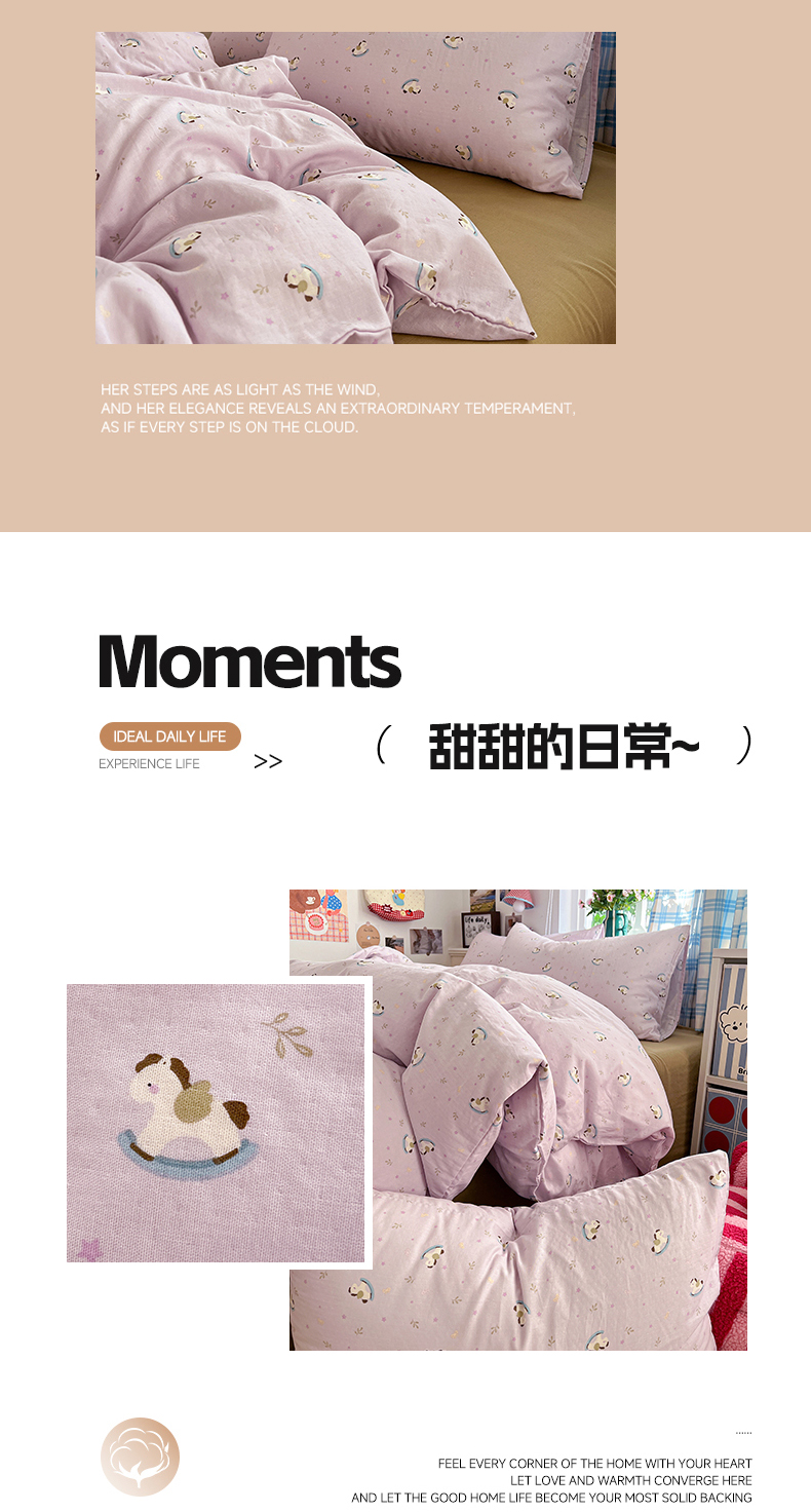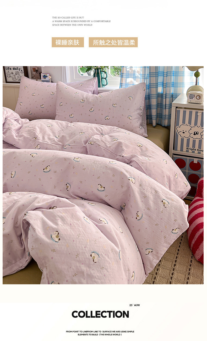 (总)焱博家纺 2026新款A类全棉双层纱系列四件套,宝妮乐园,春野苍兰,点点蔓纱,疯狂小CP,工程车小队,焦糖奶汪,千禧少女,闪电的朋友,温锦织,夏日牡丹,星轨小木马,星仔软糖,眼镜家族,月铃喵喵,长鼻子花园