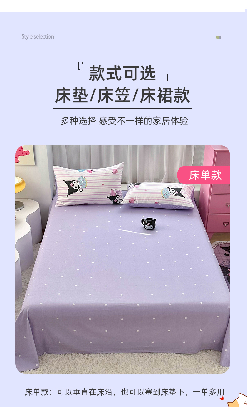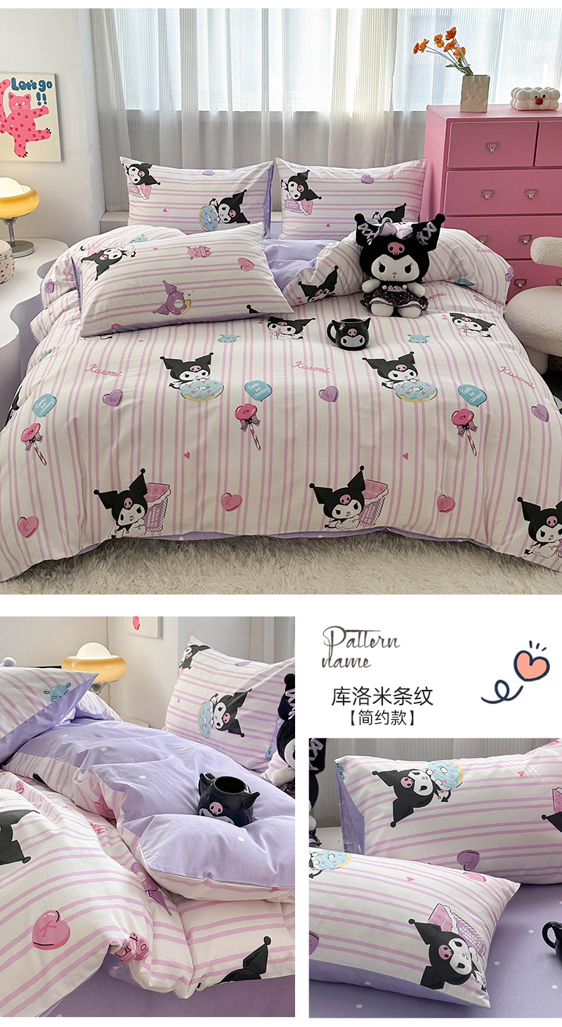 当前位置: 91家纺网 > 商品网购 > 床品套件 > 四件套 > 全棉普通四件套 > 玉元坊 2026新款正版授权三丽鸥系列全棉纯棉床单四件套学生三件套-库洛米系列 条纹库洛米【简约款】