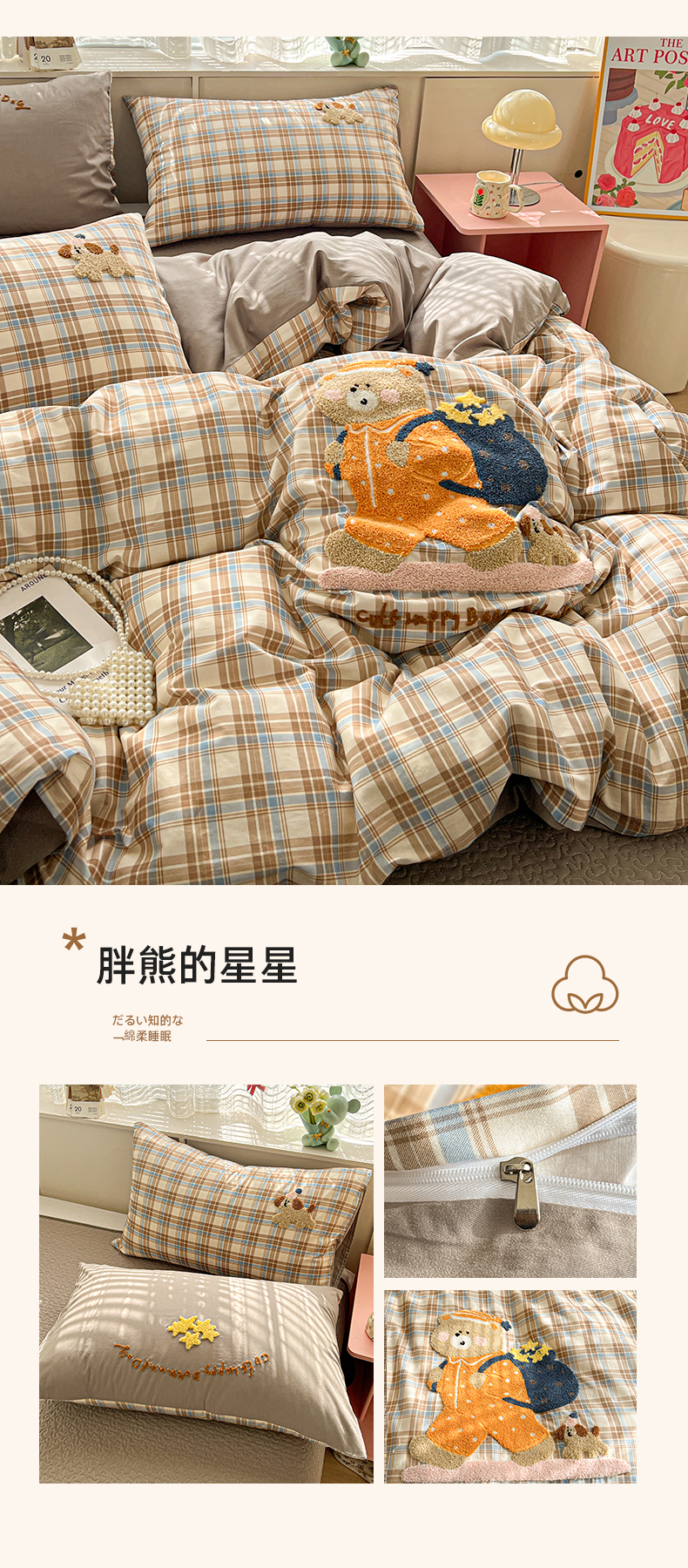 (总)鑫喜莱家纺 2026新款全棉纯棉原创毛巾绣床盖三件套单床盖软床垫,滑板小熊仔,酷酷的小熊,面包小狗,南瓜小兔,胖熊的星星,苹果小狗,线团小黑猫,星星人,组合图仅供展示-不可下单