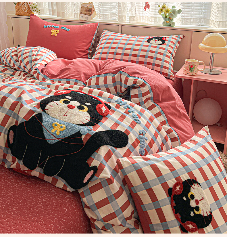 (总)鑫喜莱家纺 2025新款加厚牛奶绒卡通印花四件套,蝴蝶结小猫,波点动物园米,波点熊猫,宠物日记,调皮狗,黑白格小兔,可爱小狗,甜系蝴蝶结