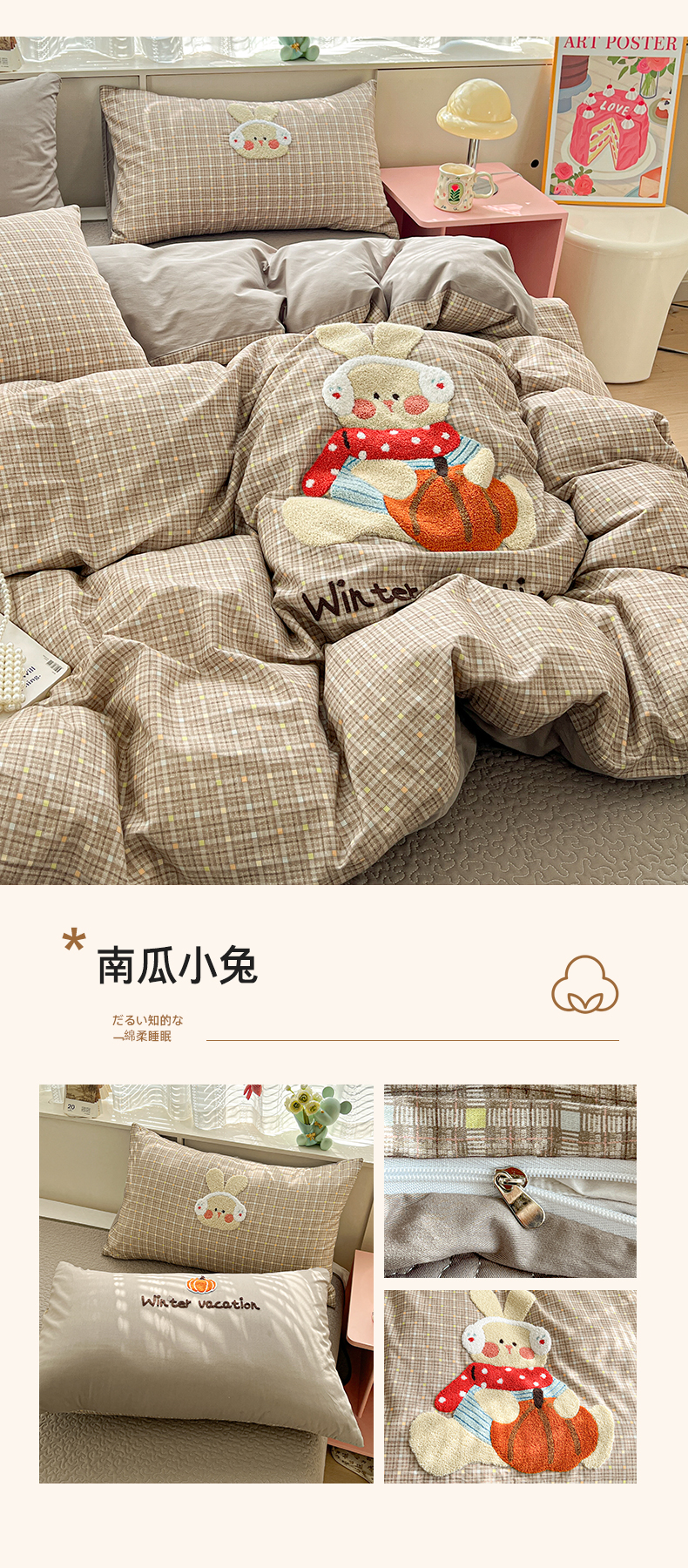 (总)鑫喜莱家纺 2025新款A版纯棉B版牛奶绒床盖毛巾绣系列单件床褥垫软床垫床盖,卡米熊和伙伴,恐龙呆呆,萝卜兔,梦幻小马,小猫伙伴,樱桃小兔,组合图仅供展示不可下单